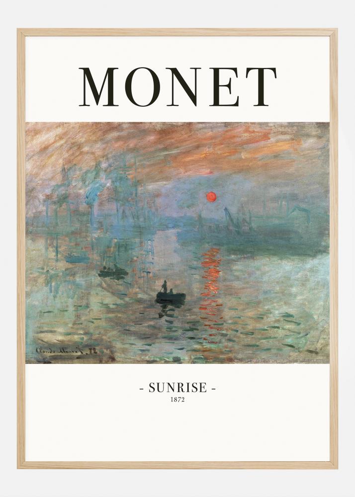 This poster reflects Claude Monet's masterpiece 'Impression, Sunrise', the painting that gave its name to Impressionism. From 1872, this work offers a hazy view of the port of Le Havre at dawn, where the sun is a blood-red orb casting its reflective light on the still water. Monet's soft yet decisive brushstrokes and the dreamlike color palette create a sense of tranquility and anticipation that every new day brings.