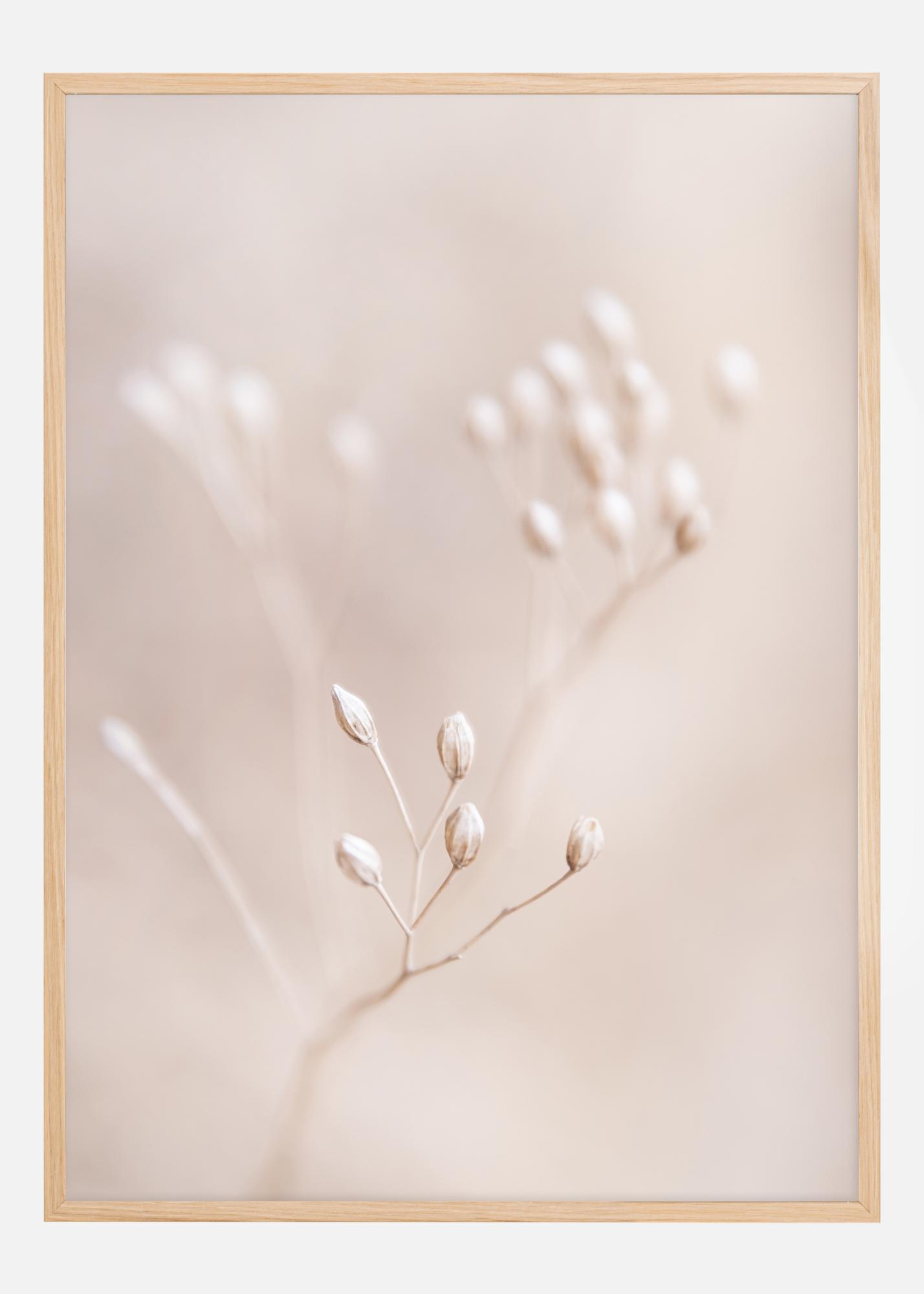 This poster captures the beauty of simplicity with a close-up photograph of straw and buds in a soft beige tone. The blurred background gives a dreamlike quality and highlights the delicate structure of the straw and the fine details of the buds. It is a tribute to the silent elegance of nature and conveys a sense of stillness and warmth.