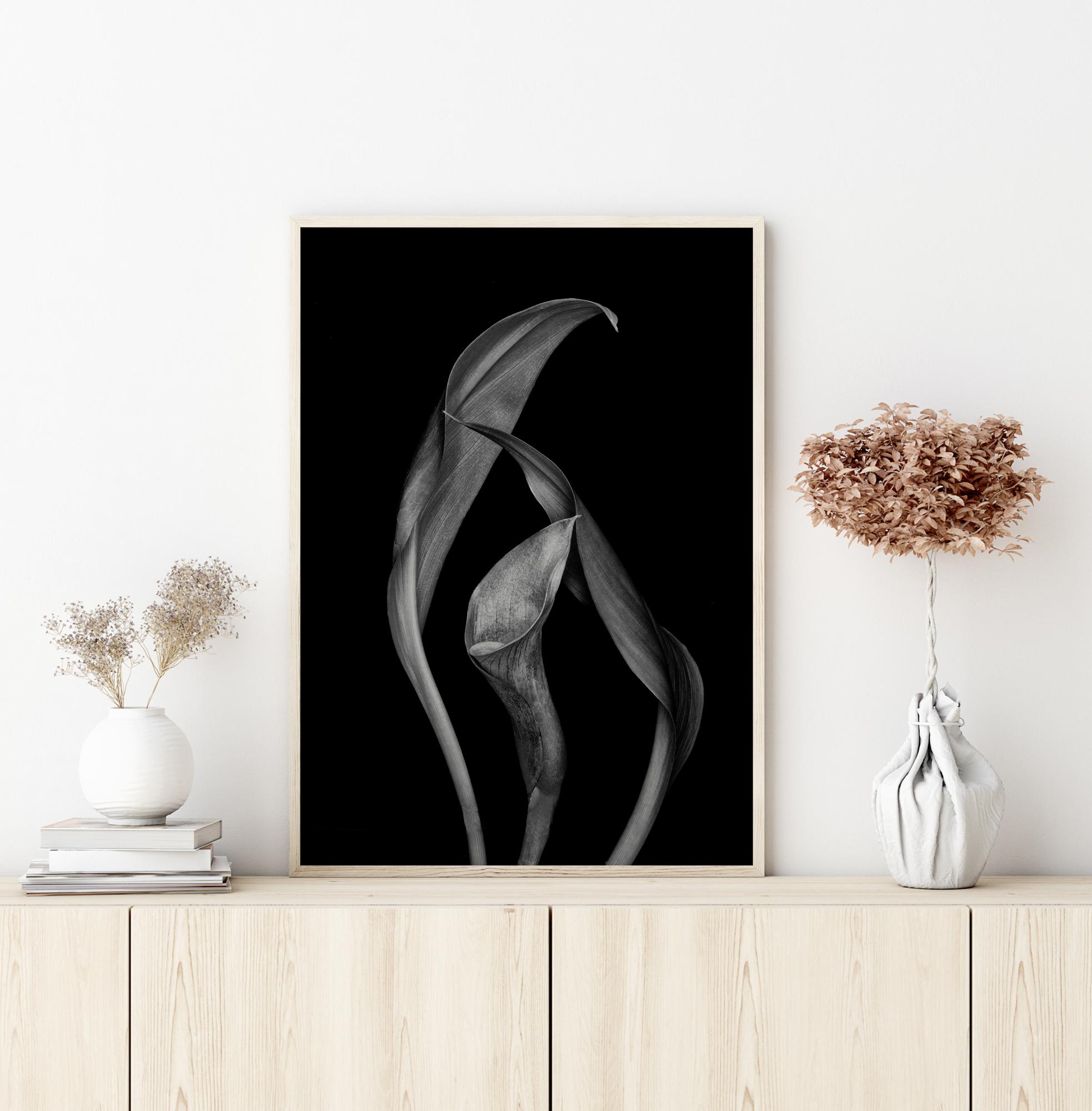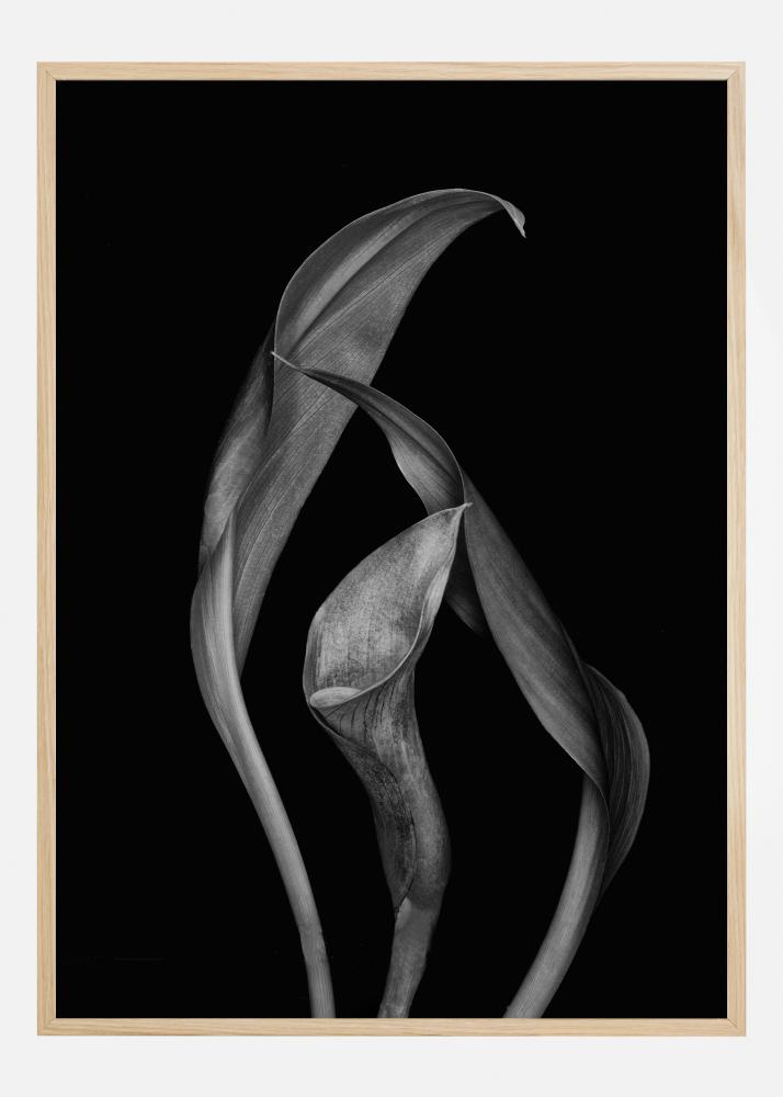 An unusual poster of dancing Calla lillies against a sharp black background. Add some drama to your home with this strange, yet compelling nature shot that is sure to inspire those who see it.