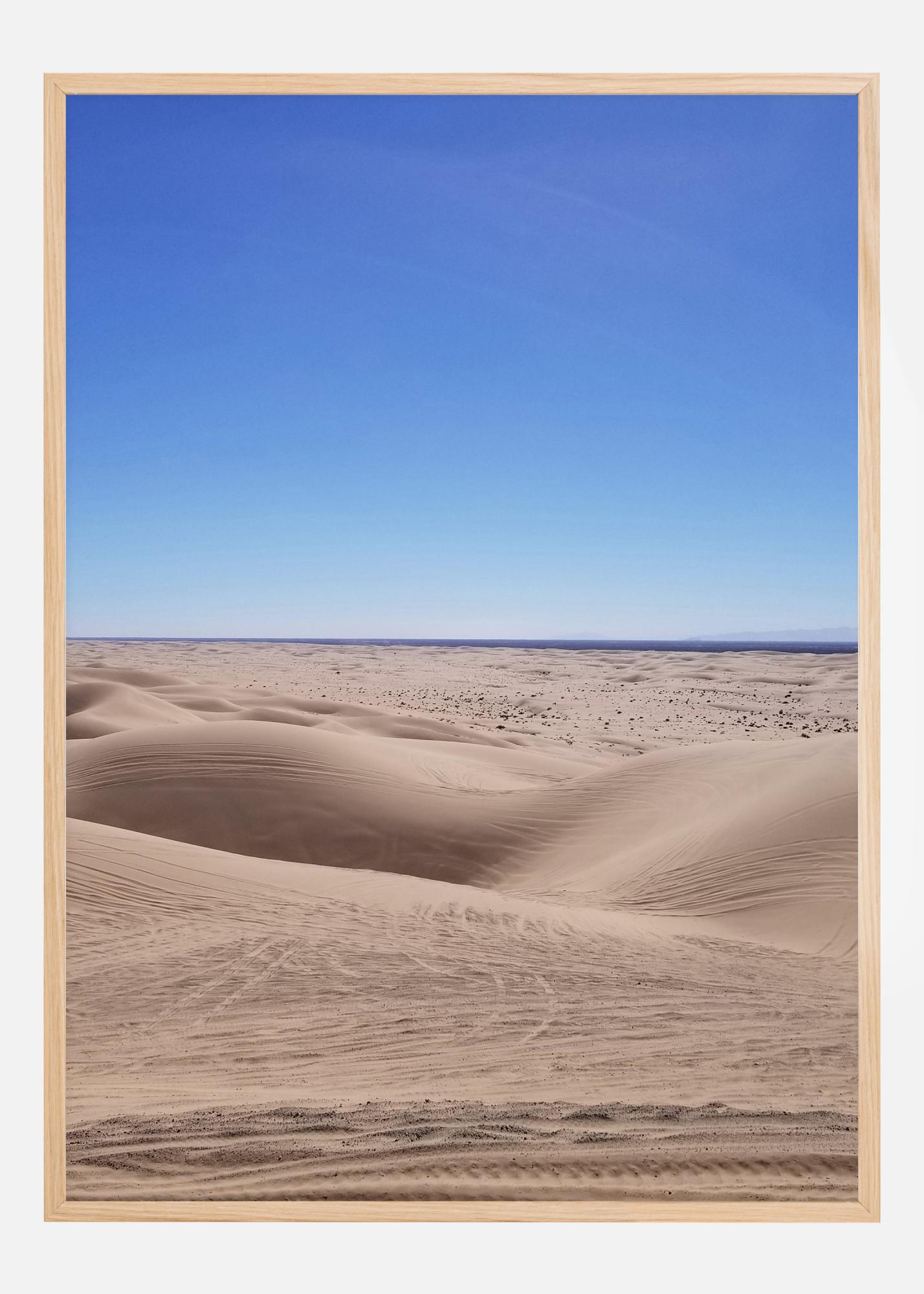 An evocative poster of a desert landscape. The deep red of the desert helps the undulating sand dunes to rise and fall pulling your eye through the scene. The soft blue sky and hazy pinks help to create that early morning vibe. Enjoy the vast scenes of nature when you bring this home.