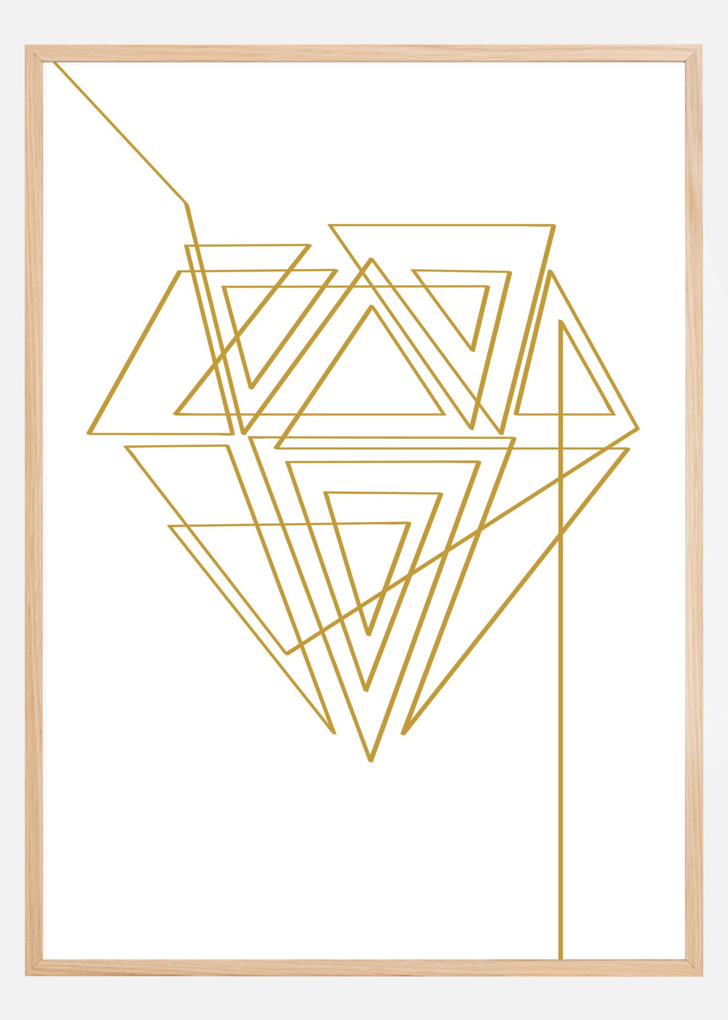 An abstract poster of a diamond made up of geometric gold lines. This diamond is cleverly created out of various triangle shapes, but all in one long, unbroken line. Follow the line and see if you can unravel the full pattern. Set on a white background, this works best on a cream or gold wall.