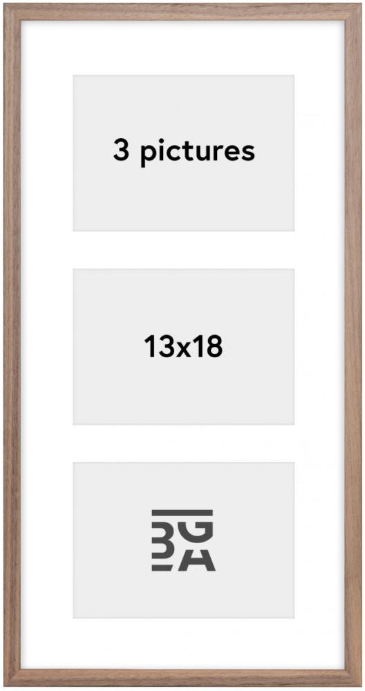 The minimalist design puts the subject in focus, so that your favorite pictures will be the center of attention. The frame is available in several designs, of which this is a walnut variant with space for 3 pictures in size 13x18 cm.