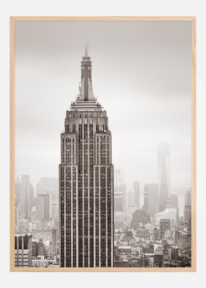 An urban poster of the Empire State Building in New York. The Empire State Building is the focus here, standing tall against the NY backdrop. The rest of the city is partially hidden in mist making the details of this skyscraper stand out clearly. Imagine this is your view when you bring this home.