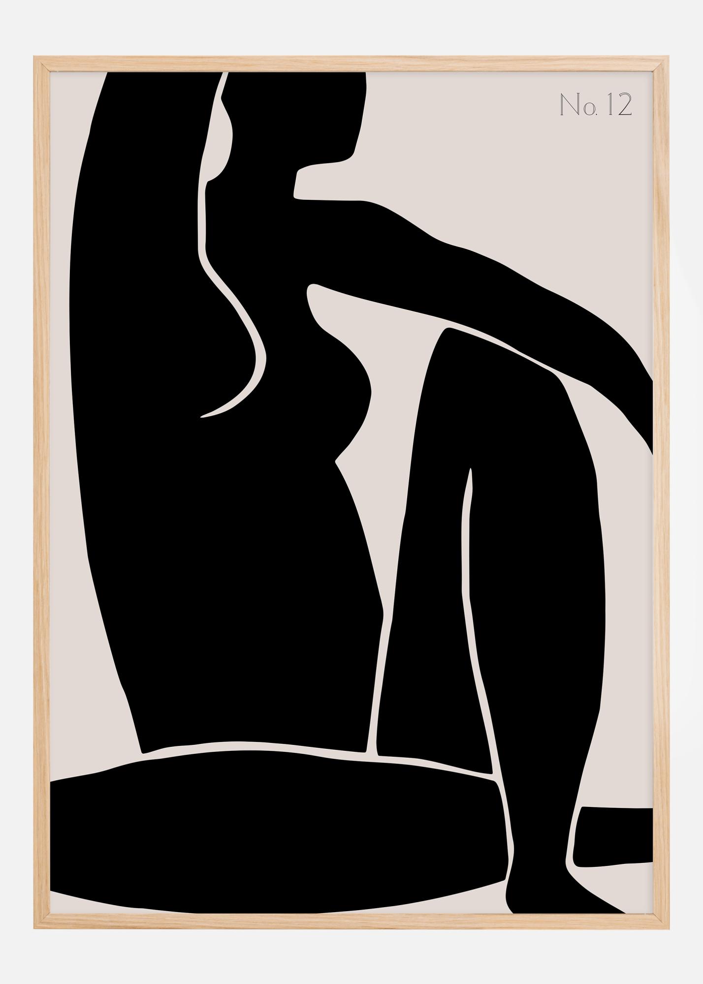 The contrast between the black figure and the light background is not only bold; it also illustrates the meeting between light and shadow, form and void, giving a strong graphic effect. 'No. 12' is a poster that is as much a modern art experience as it is an interior detail and is perfect for those seeking a contemporary aesthetic with a hint of the dramatic. It is ideal for minimalist or monochrome interior styles, where it can stand as a strong solitary accent or be combined with other similar works to create an impressive picture wall.