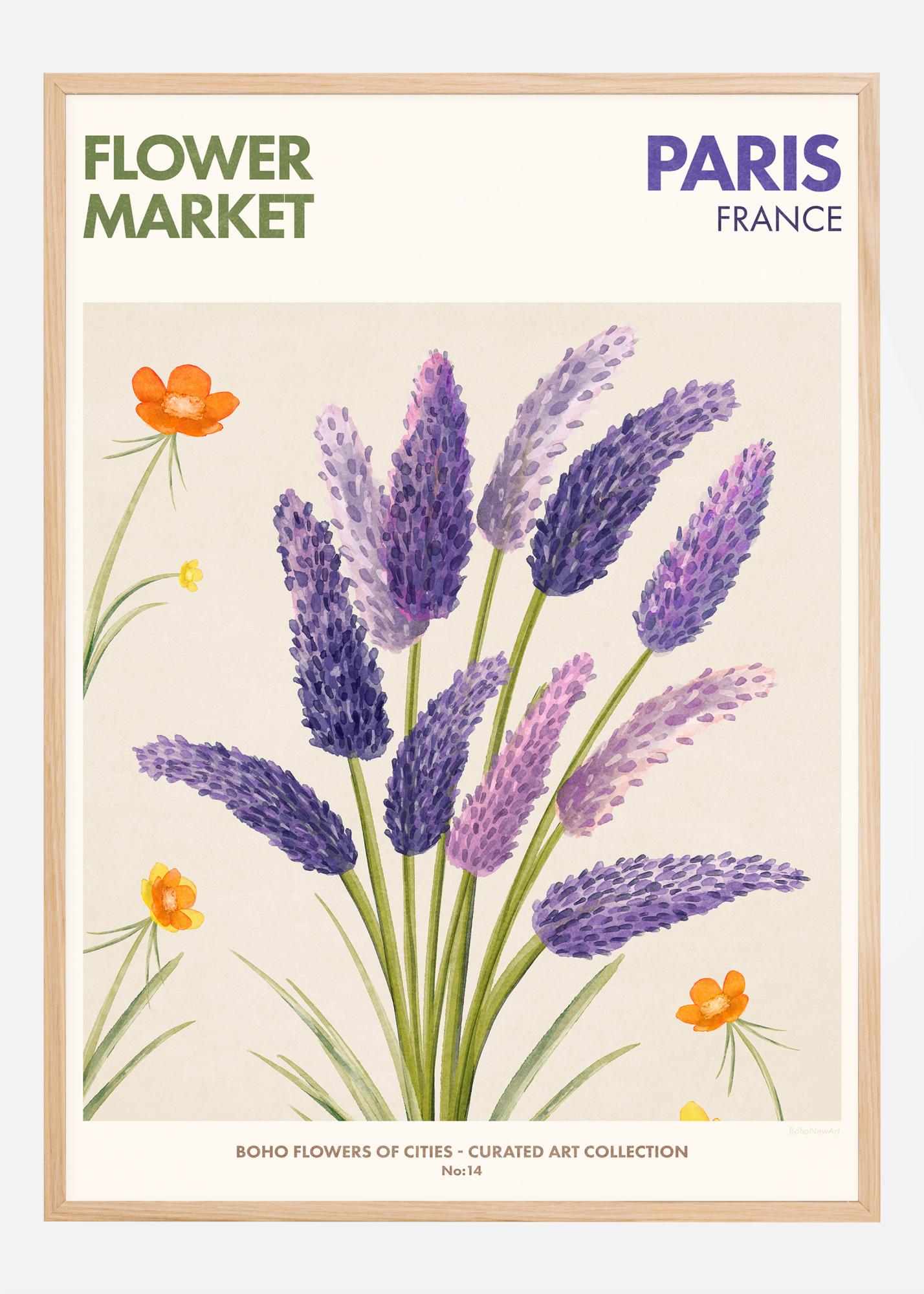 Discover the charm and elegance of Paris through this beautiful poster that is part of our 'BOHO Flowers of Cities' - Curated Art Collection. This artistic depiction of sweet lavender and vibrant orangey-red poppies captures the iconic floral splendor you can experience at the city's flower markets. Perfect for those who wish to introduce a part of the city's romantic atmosphere into their home, this poster offers a French flair that is both classic and timeless.