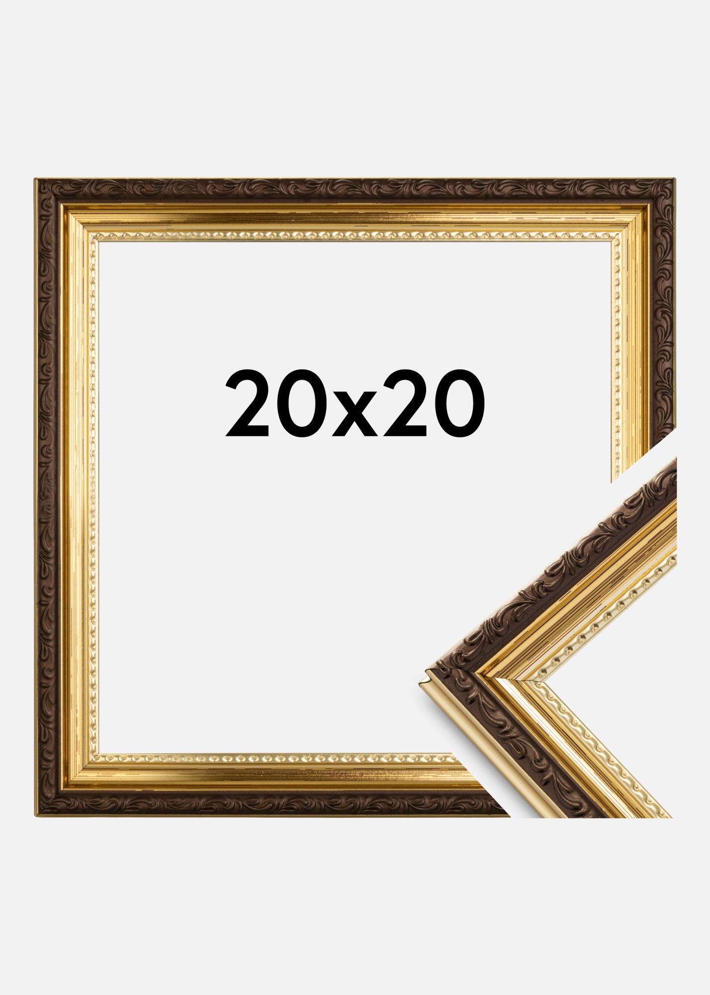 Looking for a beautifully decorated frame in a vintage style? Abisko Acrylic Glass Gold is a sturdy gold frame with unbelievably elegant detailing. The frame is 25mm wide and has a glossy gold colour with ornate brown edging. The vintage look is accentuated by an elegant wave pattern closest to the glass.