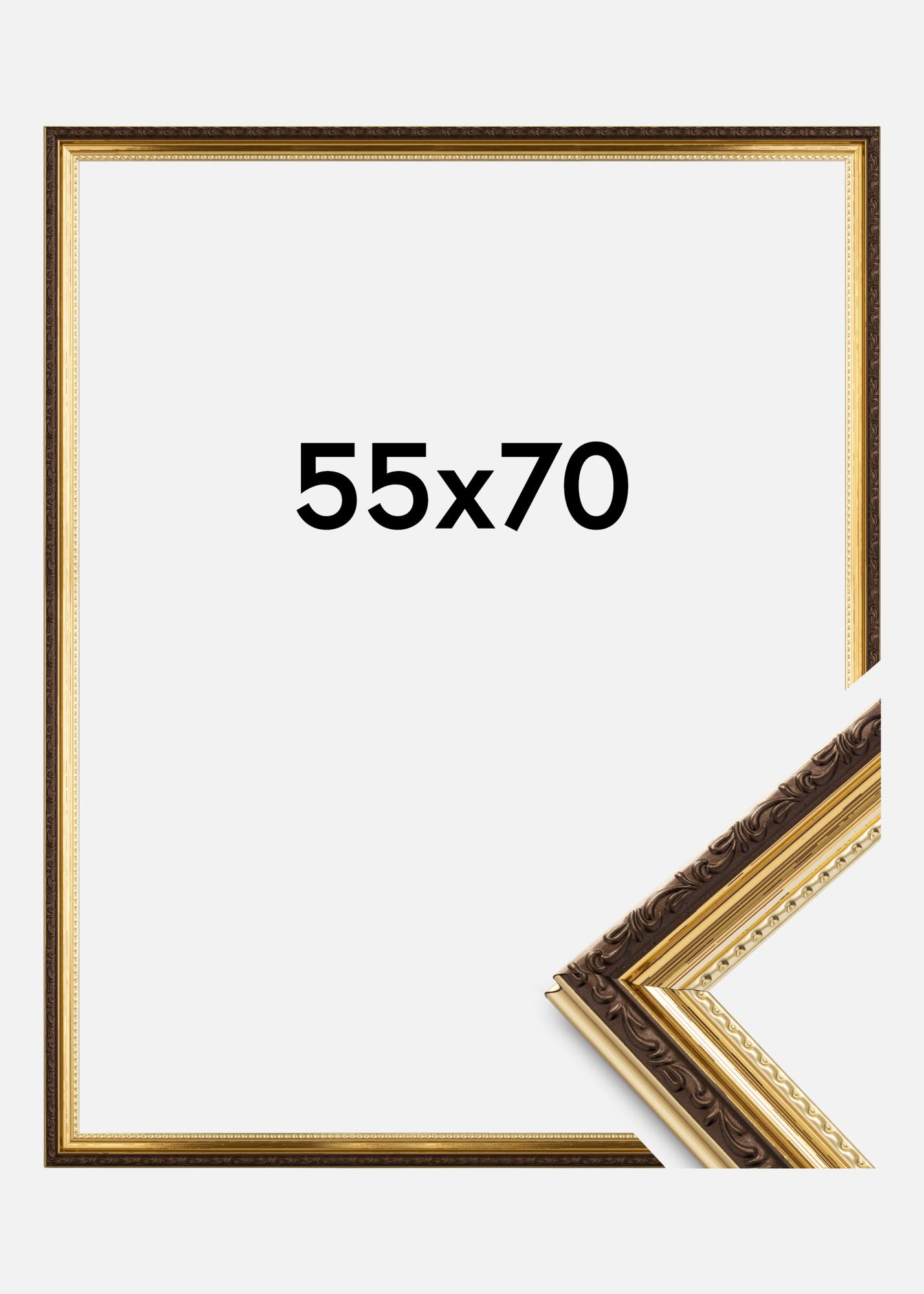 Looking for a beautifully decorated frame in a vintage style? Abisko Acrylic Glass Gold is a sturdy gold frame with unbelievably elegant detailing. The frame is 25mm wide and has a glossy gold colour with ornate brown edging. The vintage look is accentuated by an elegant wave pattern closest to the glass.