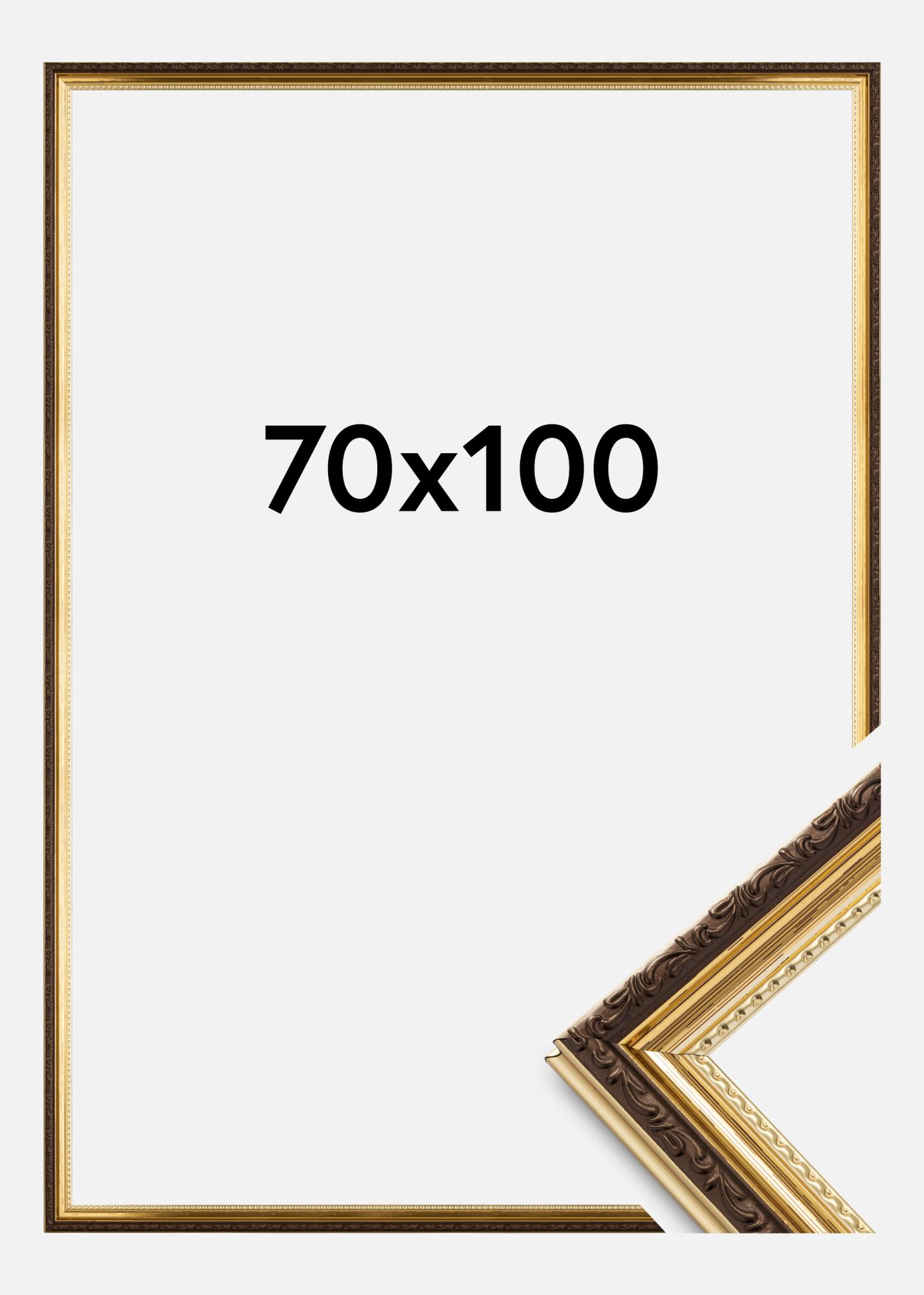 Looking for a beautifully decorated frame in a vintage style? Abisko Acrylic Glass Gold is a sturdy gold frame with unbelievably elegant detailing. The frame is 25mm wide and has a glossy gold colour with ornate brown edging. The vintage look is accentuated by an elegant wave pattern closest to the glass.