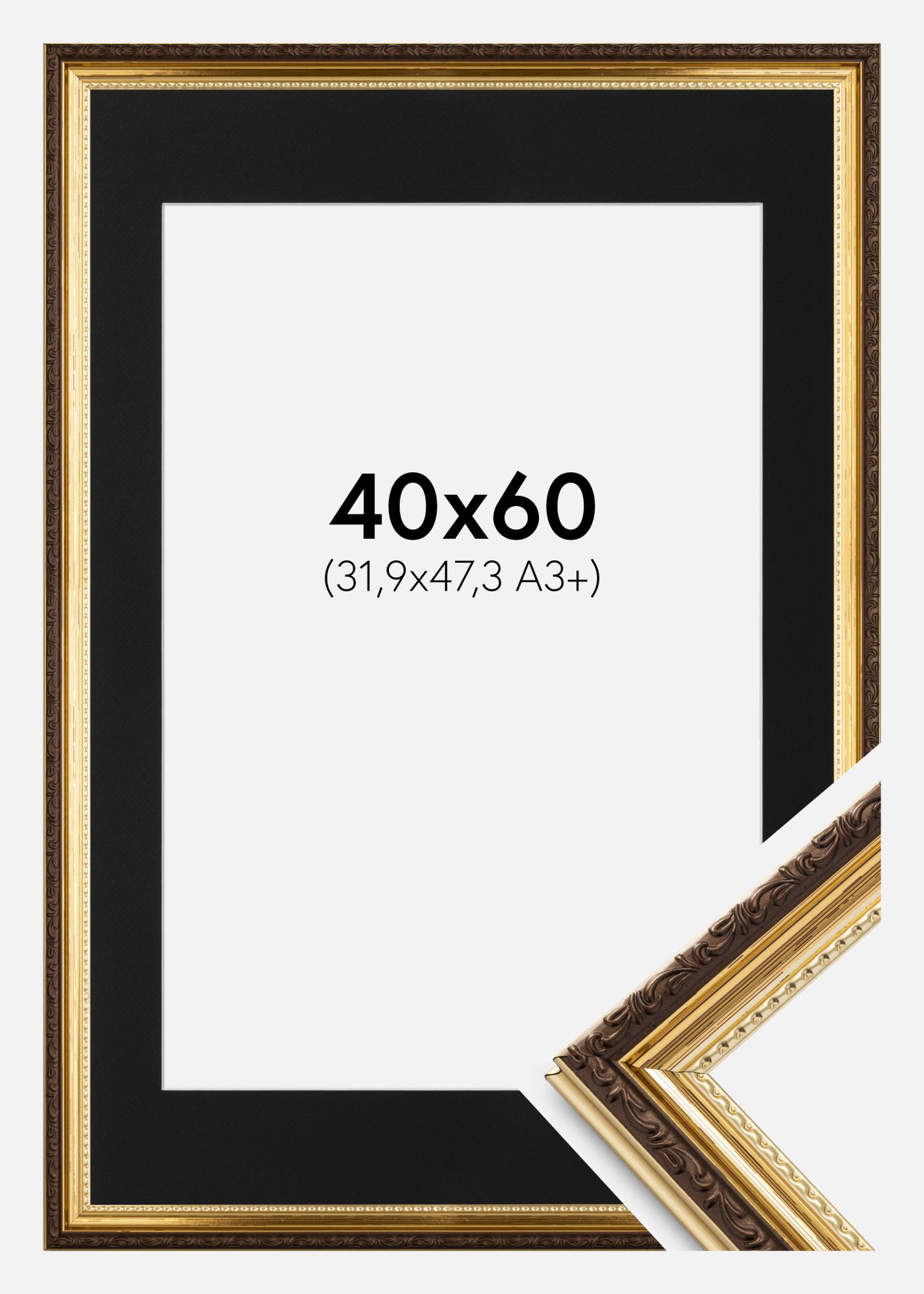 Frame Abisko Gold 40x60 cm - Picture Mount Black 32.9x48.3 cm (A3+)