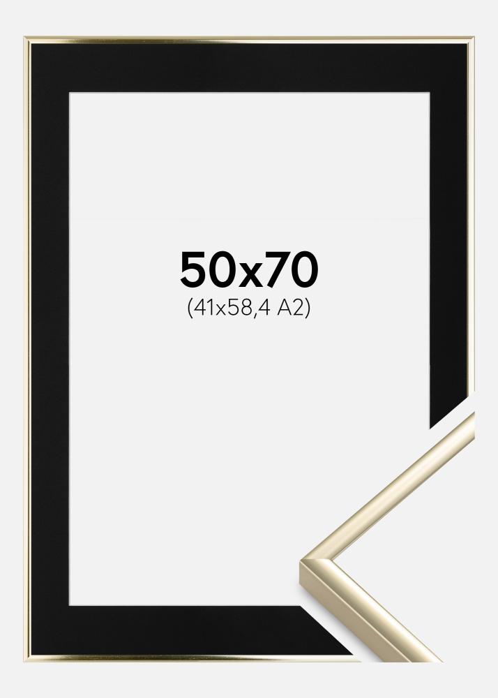 Frame Aluminium Shiny Gold 50x70 cm - Picture Mount Black 42x59.4 cm (A2)
