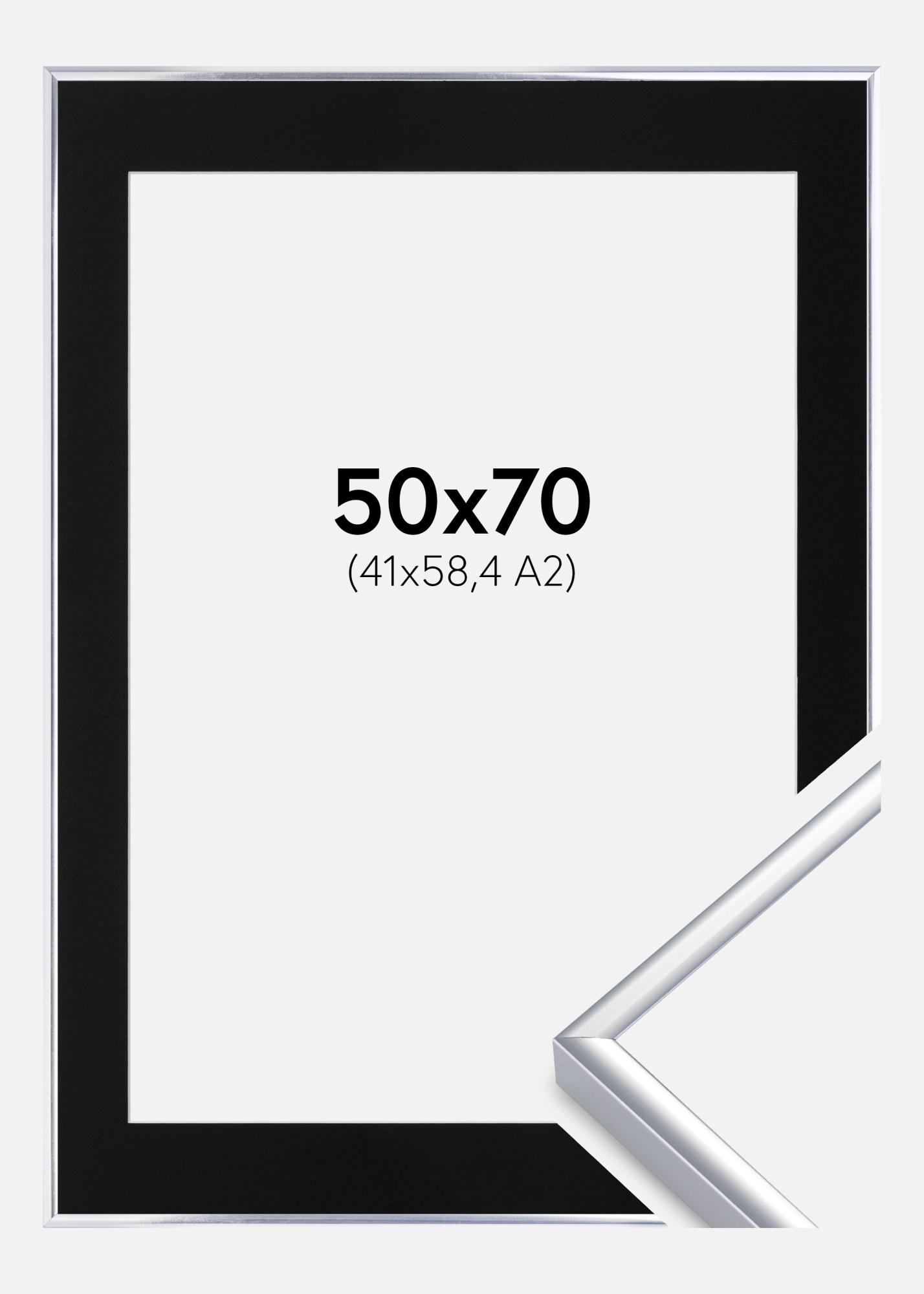 Frame Aluminium Shiny Silver 50x70 cm - Picture Mount Black 42x59.4 cm (A2)
