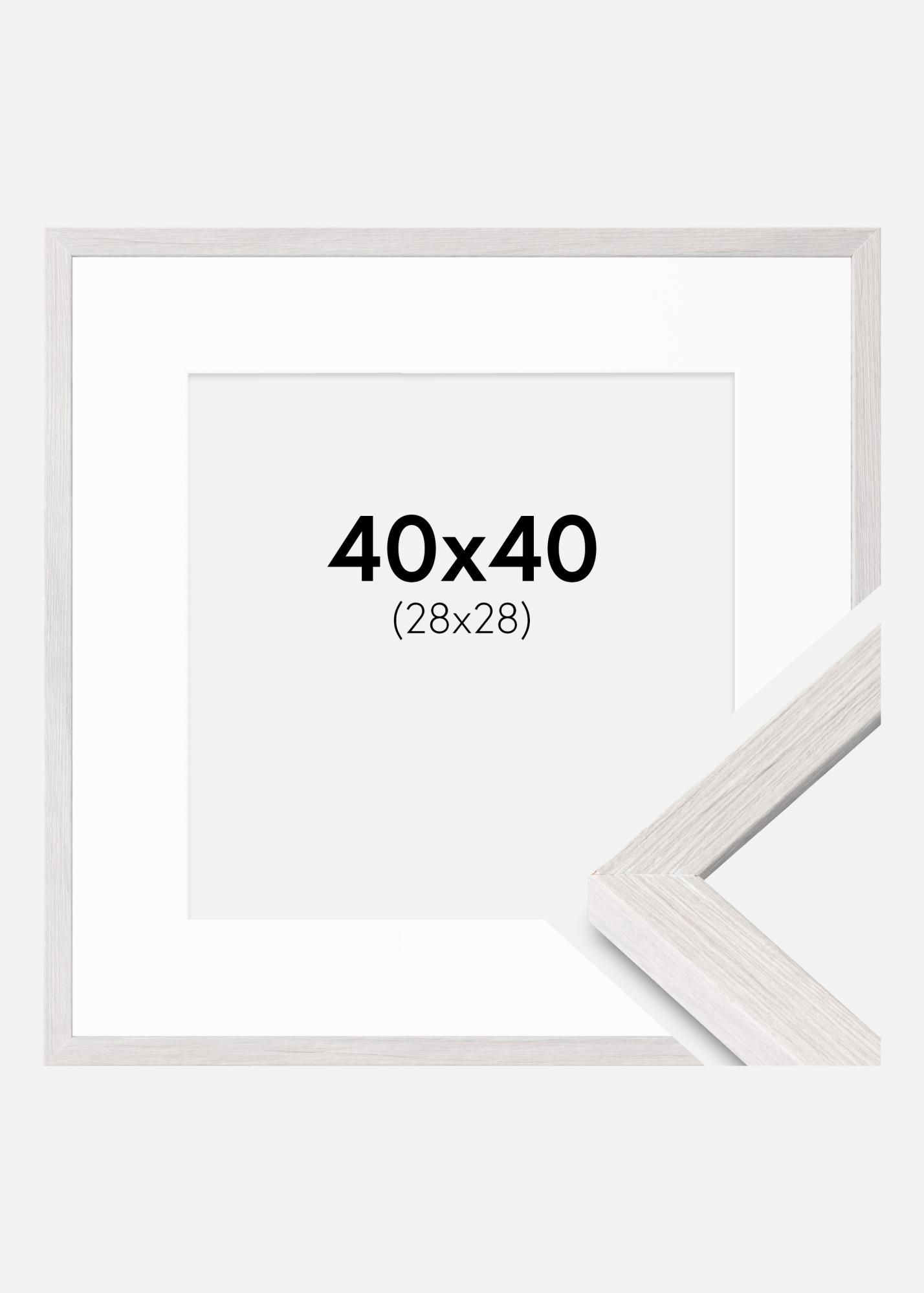 The passepartout fits an image of 29x29 cm. The frame color is white oak-colored with a width of 15 mm and a depth of 20 mm. The color of the passepartout is white.