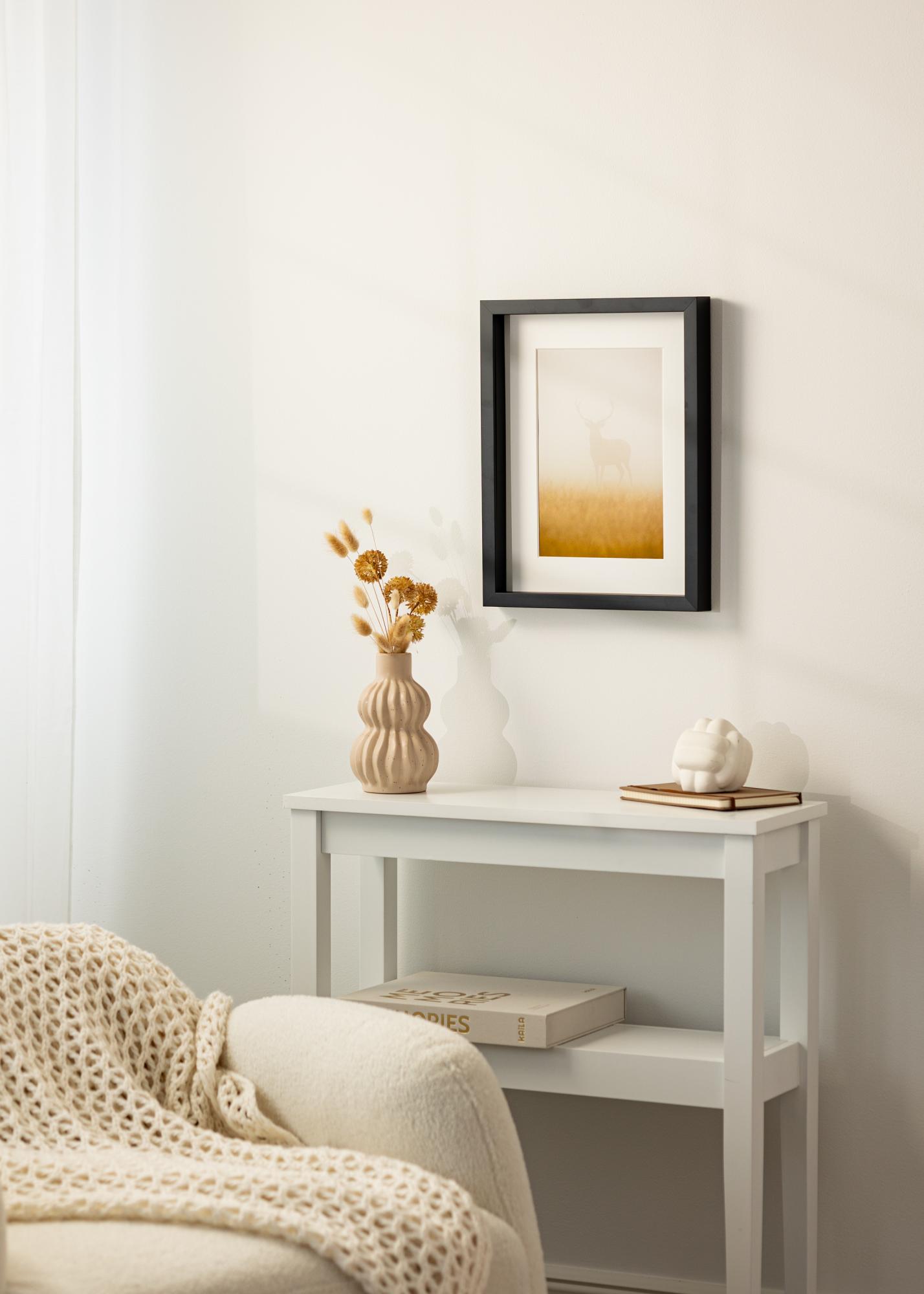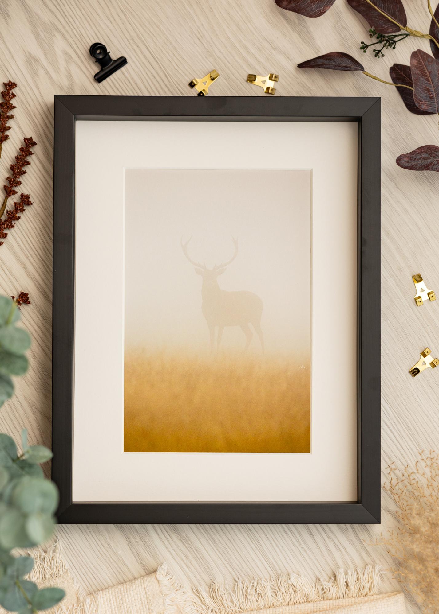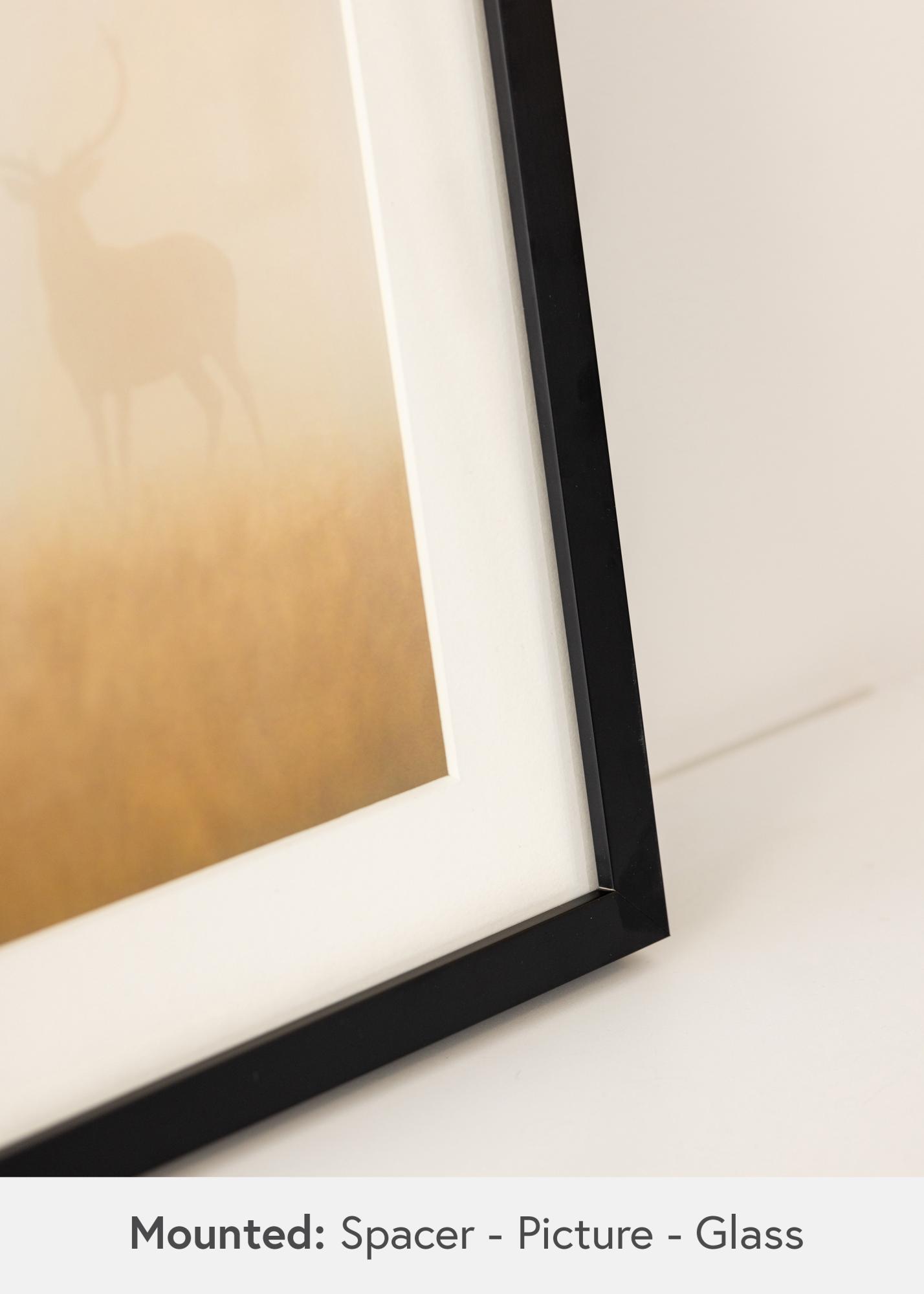 Made of pine, this picture frame is both durable and lightweight, making it easy to handle and mount. A unique feature of Balder Black is the included spacer strip. This strip creates a gap between the glass and the picture, giving an effect of depth and allowing the picture to be placed further back in the frame or floating between the glass and the backing. This provides a sleek and exclusive framing that truly highlights the motif.