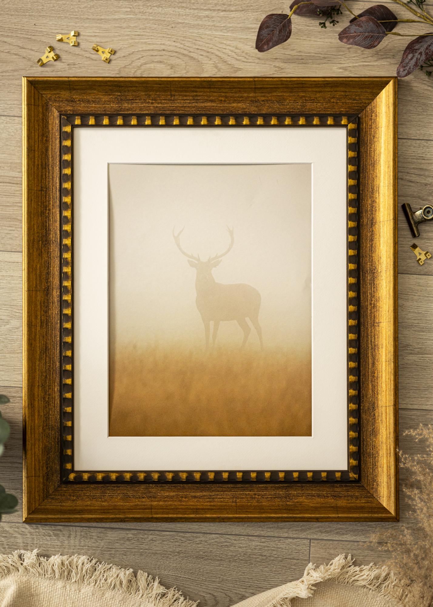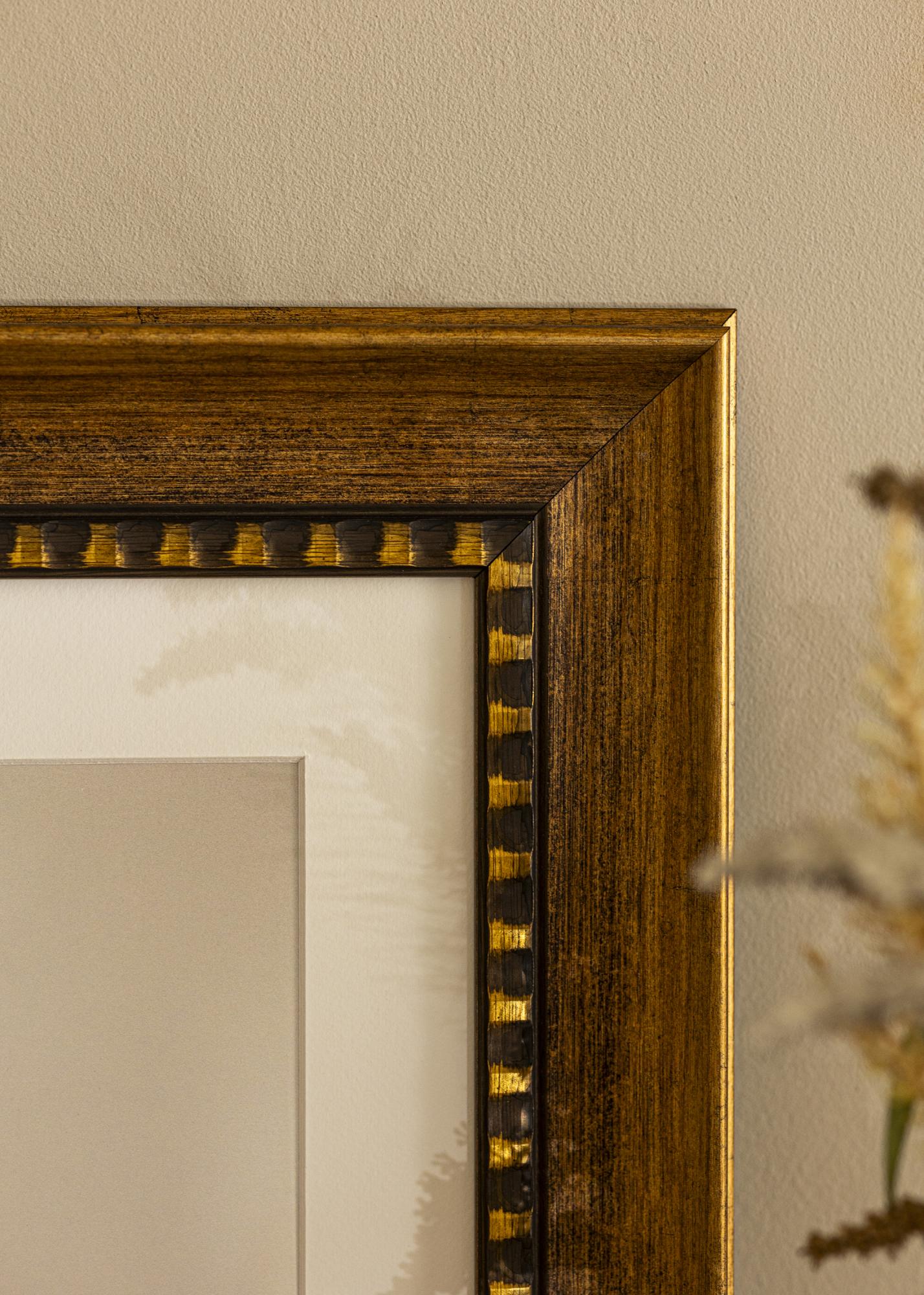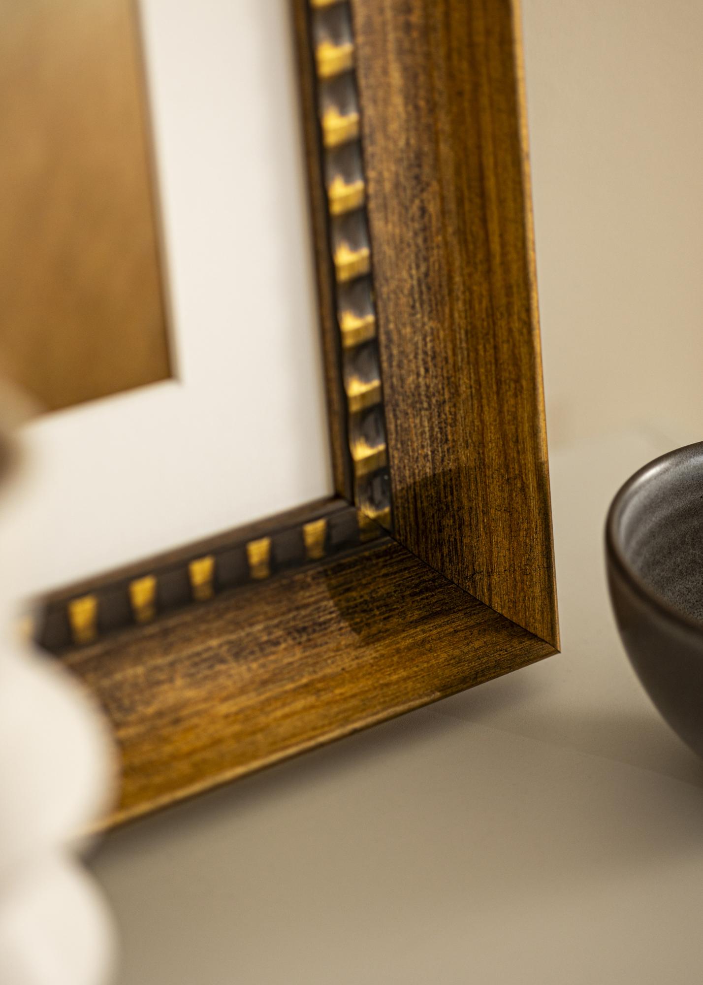 Frame Camden Gold is a custom-made picture frame manufactured by us, allowing you to get exactly the size you need for your artwork. With a warm brown color and an elegant antique finish, this photo frame offers a sophisticated framing for your pictures.