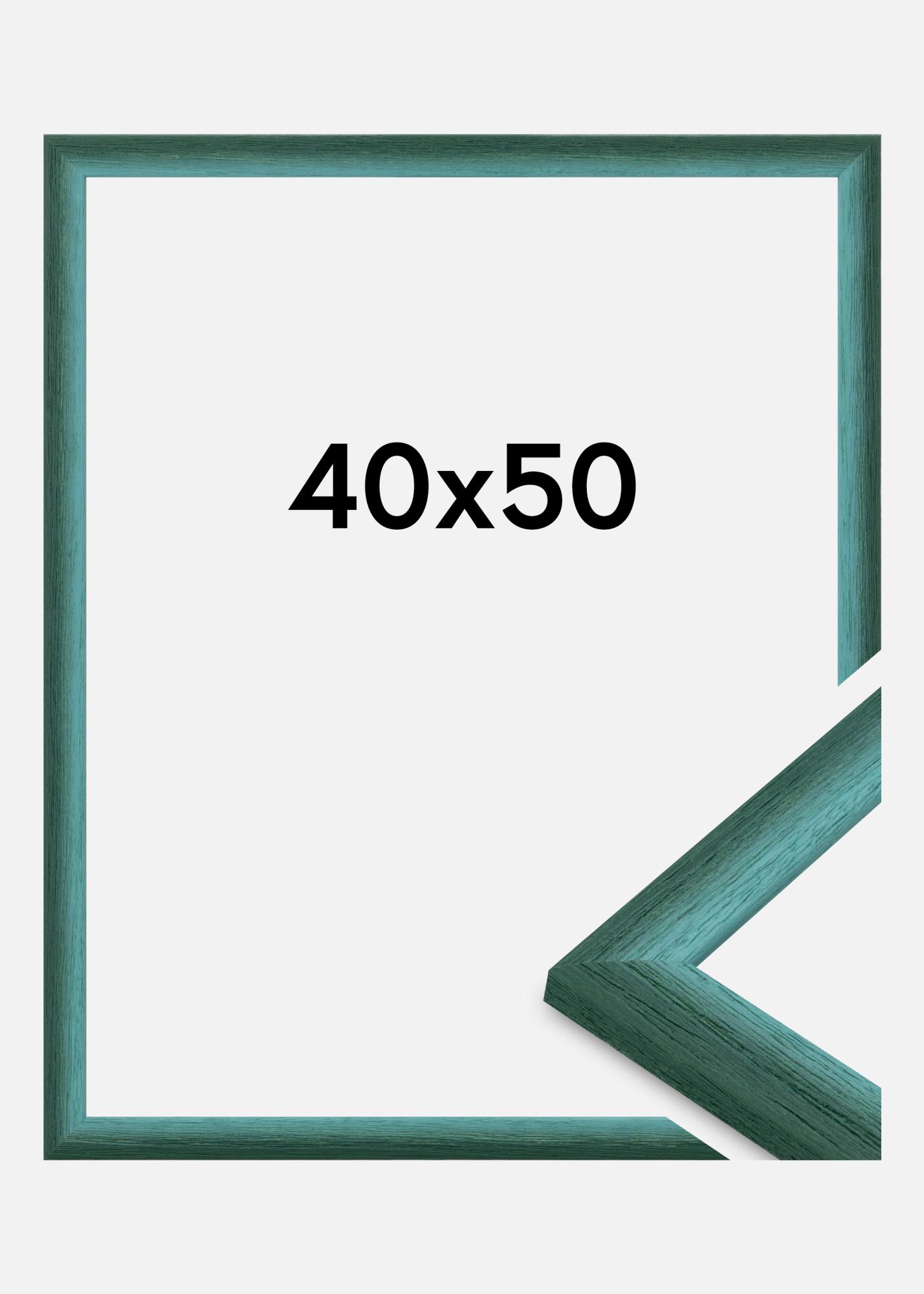 This picture Frame in size 40x50 cm is a perfect blend of modern design and natural beauty. Its soft turquoise-green tone and matte finish highlight the natural texture of the wood in an elegant way. The slim profile, with a Frame moulding of 23 mm and a depth of 13 mm, creates a clean and understated look that lets your artwork take centre stage.