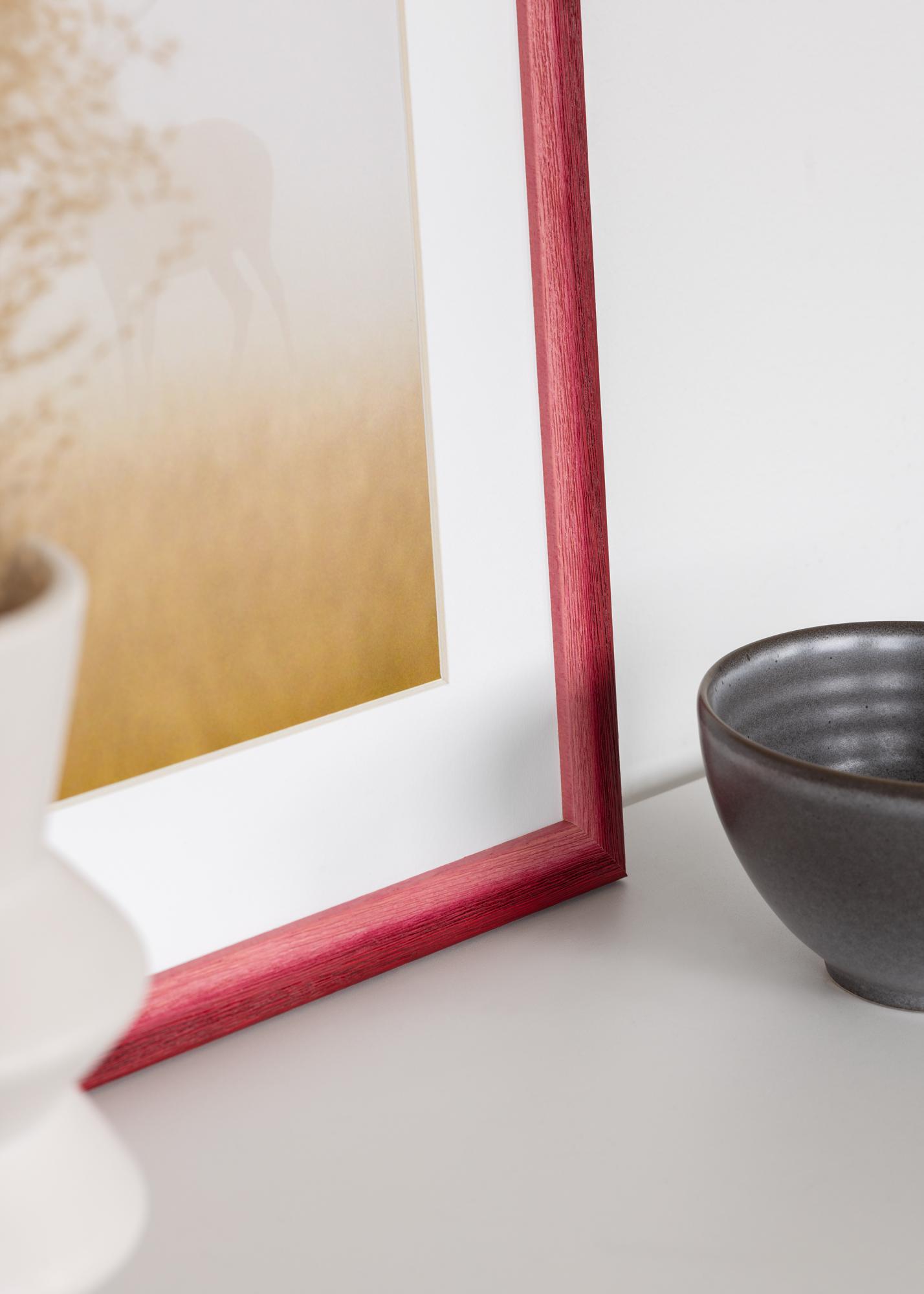 This photo Frame in the size 40x50 cm is a perfect blend of modern design and classic elegance. With its smooth surface in a red Pink shade, it highlights the natural beauty of the wood and gives a stylish impression. The slim profile of 23 mm and a depth of 13 mm ensure your artwork truly takes centre stage, whether it's photographs or posters.