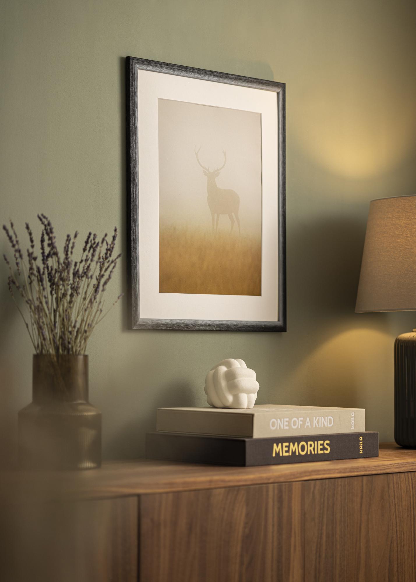 Our custom-sized picture frame Cornwall Black is the perfect choice for those seeking an elegant and dynamic framing. With a sleek color transition from light gray to deep black, this photo frame offers a sophisticated expression that fits in most environments. The prominent wood structure with clear grains gives a rustic feel and enhances the natural character of the material.