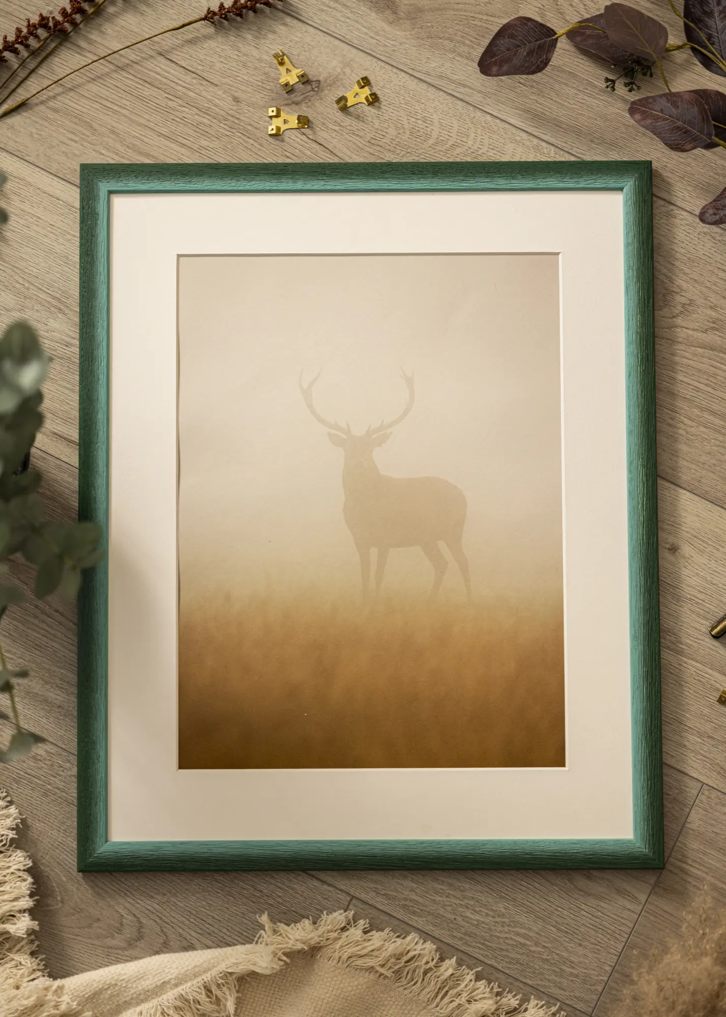 Discover our custom-sized picture frame Cornwall in an elegant dark green shade, perfect for highlighting your favorite images. With a 23 mm wide frame list and a depth of 13 mm, this photo frame offers a subtle yet distinctive framing that suits both modern and traditional interiors. Made from durable Ayous wood, it combines natural beauty with robust durability.