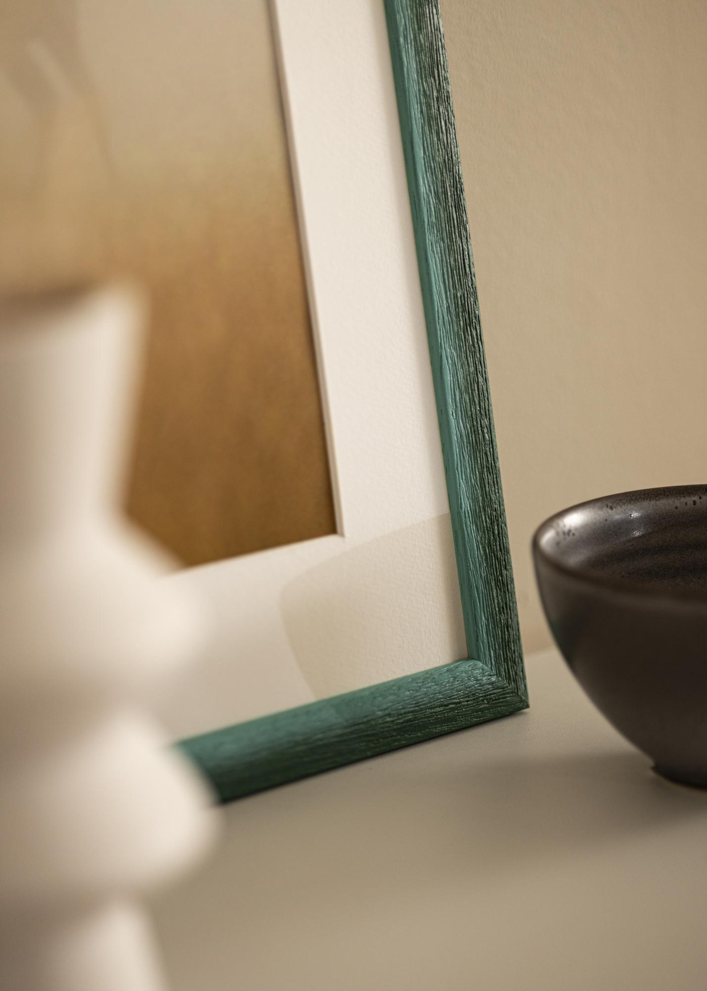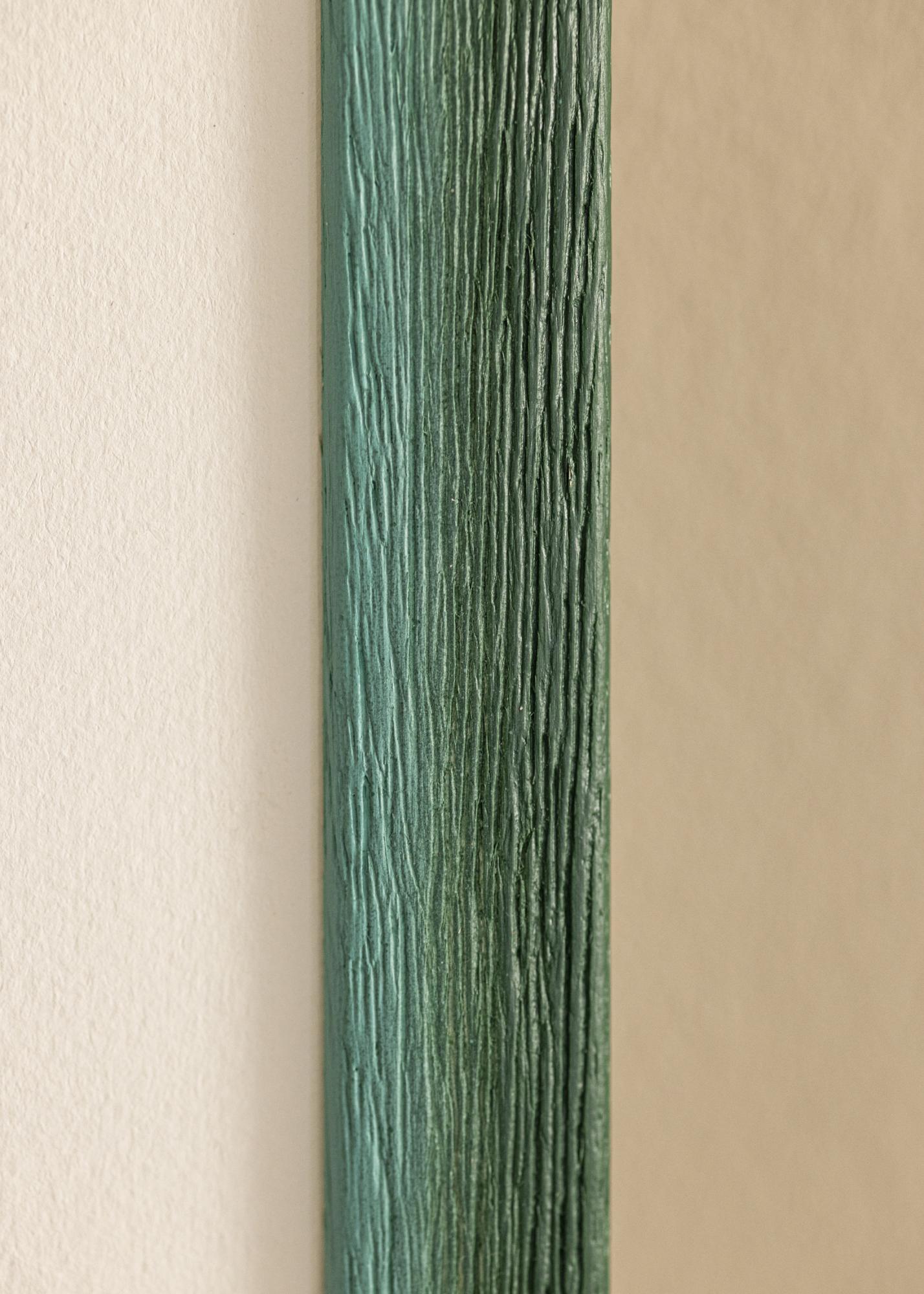 The muted green color has subtle variations that provide a vibrant and natural expression, while the prominent wood grain structure with deep veins creates a rustic feel. The surface has a matte finish that softens the color's intensity and provides a gentle impression, allowing your images to truly take center stage. The narrow profile balances the rustic look with modern simplicity.