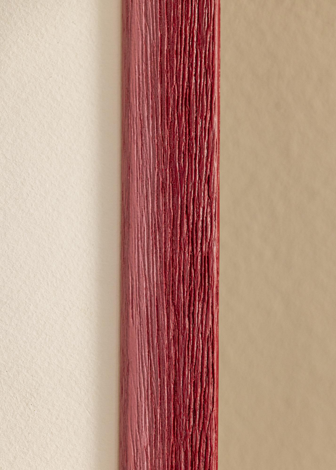Our custom-sized picture frame Cornwall Dark Red is a perfect solution for those seeking a unique and personal framing. With its deep red color and subtle shades, this photo frame offers a vibrant expression that catches the eye. The natural wood texture in ayous wood with its beautiful grain enhances the rustic look and gives a sense of authenticity.