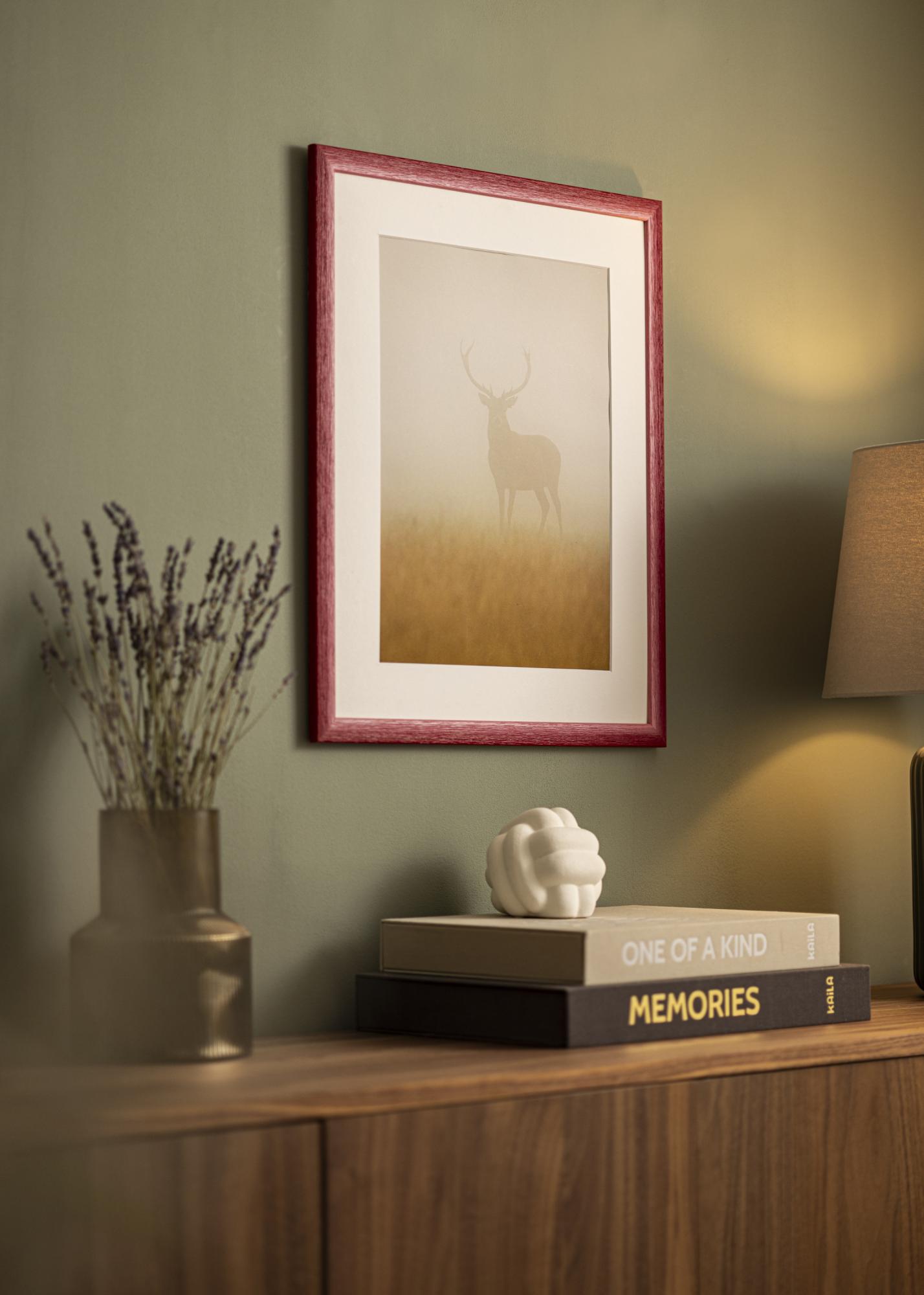 Since every frame is made in our own frame workshop, you can be assured of receiving a high-quality product, tailored to your specific measurements. Please note that since the product is custom-sized, it is not possible to cancel your purchase after ordering. Choose Cornwall Dark Red for a personal and stylish framing that truly makes a difference.