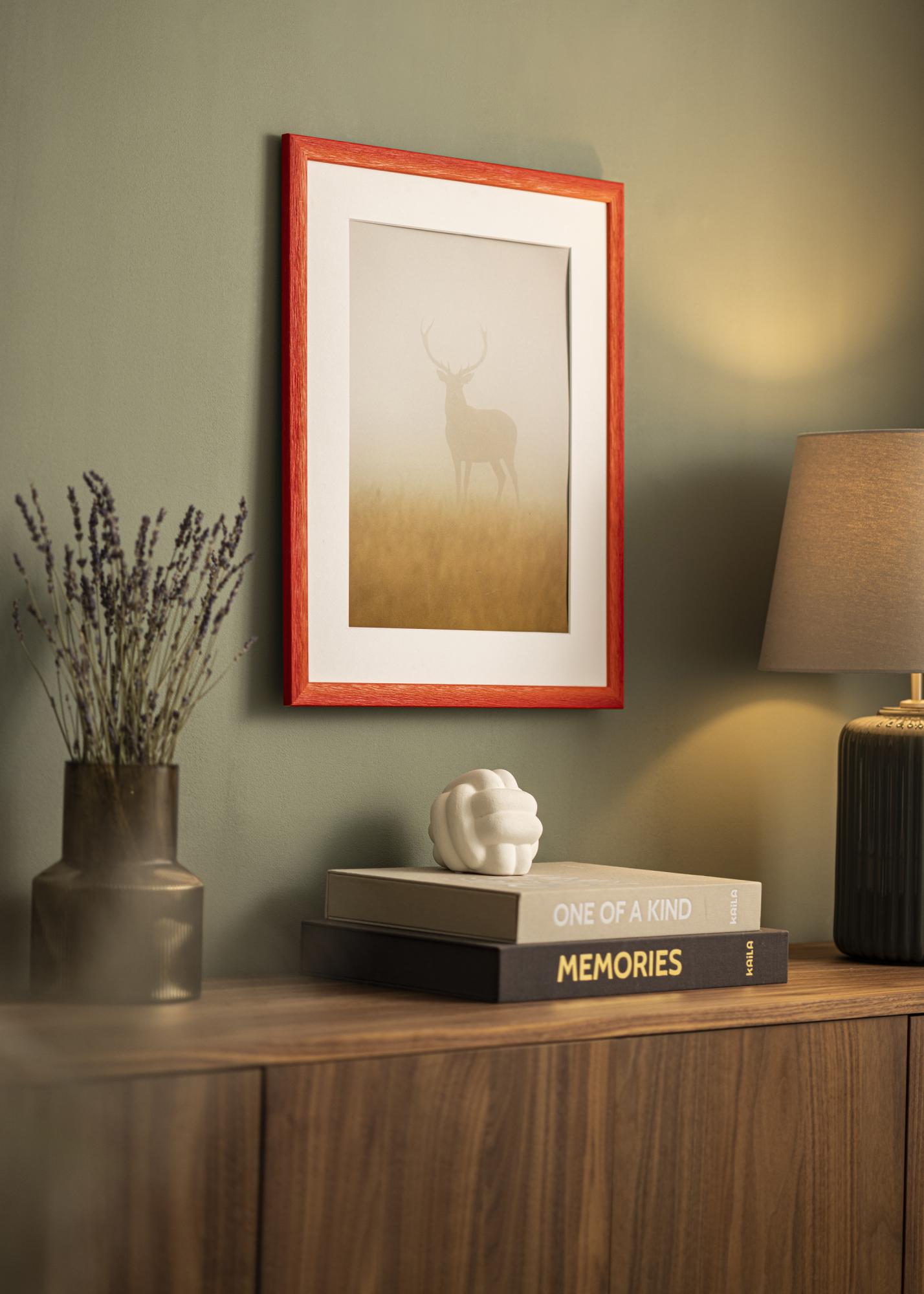 Our custom-sized picture frame Cornwall Red is a perfect solution for those seeking a unique and personal framing. With its intense red color and warm undertones, this photo frame becomes an eye-catching element in your home. The subtle shift in color provides a vibrant expression that captures the eye.