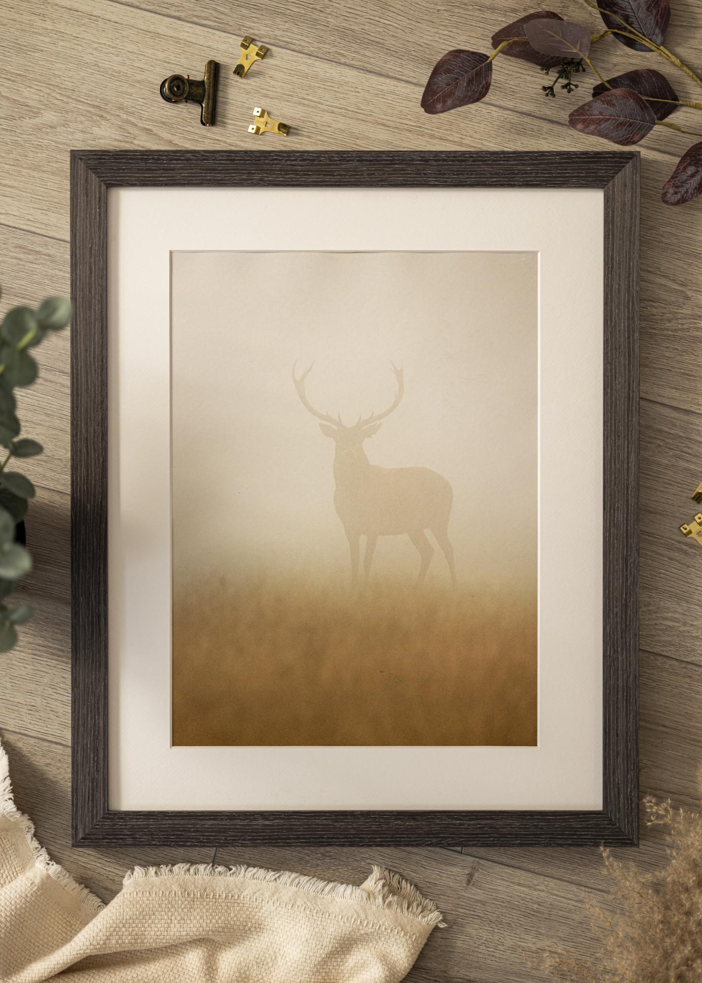 This picture frame is made of pine and has a dark wood finish with a clearly grained structure. The deep, almost black-brown tone lets the wood's natural texture stand out through a lightly matte surface, enhancing its natural appearance. The narrow and straight profile gives a discreet and stylish expression that suits most environments.