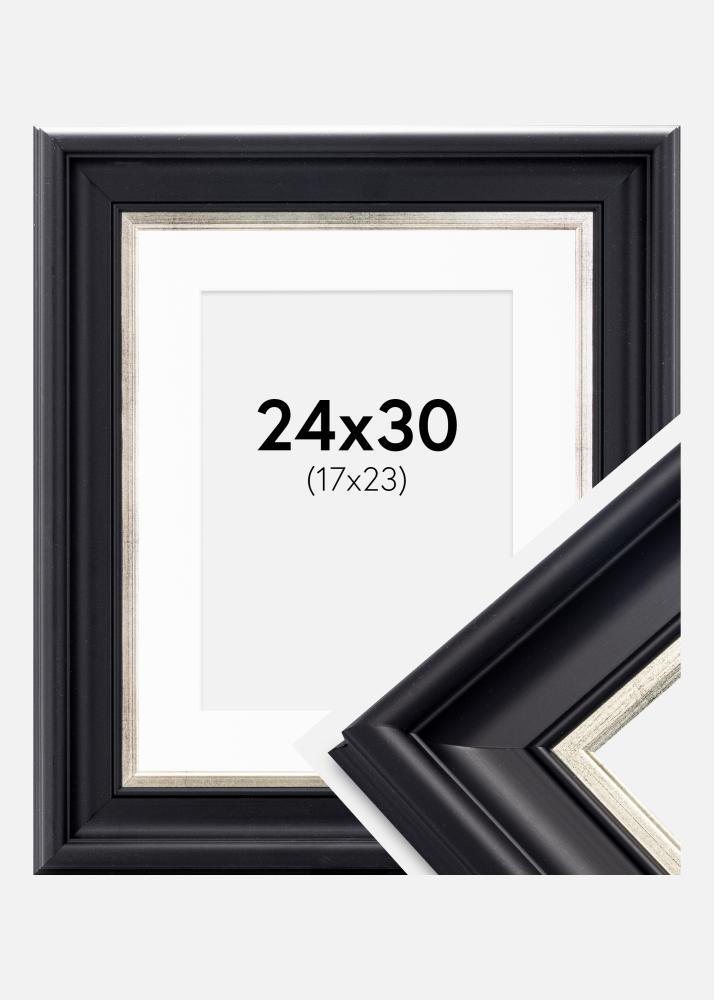 Frame Dalarna Black-Silver 24x30 cm - Picture Mount White 18x24 cm