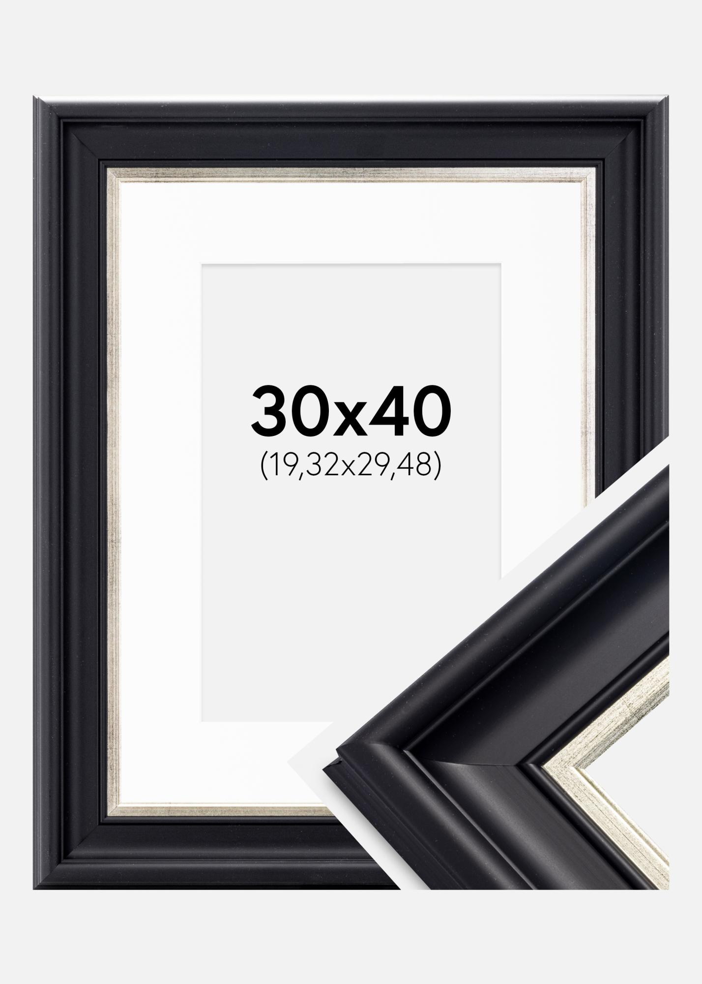 Frame Dalarna Black-Silver 30x40 cm - Picture Mount White 8x12 inches