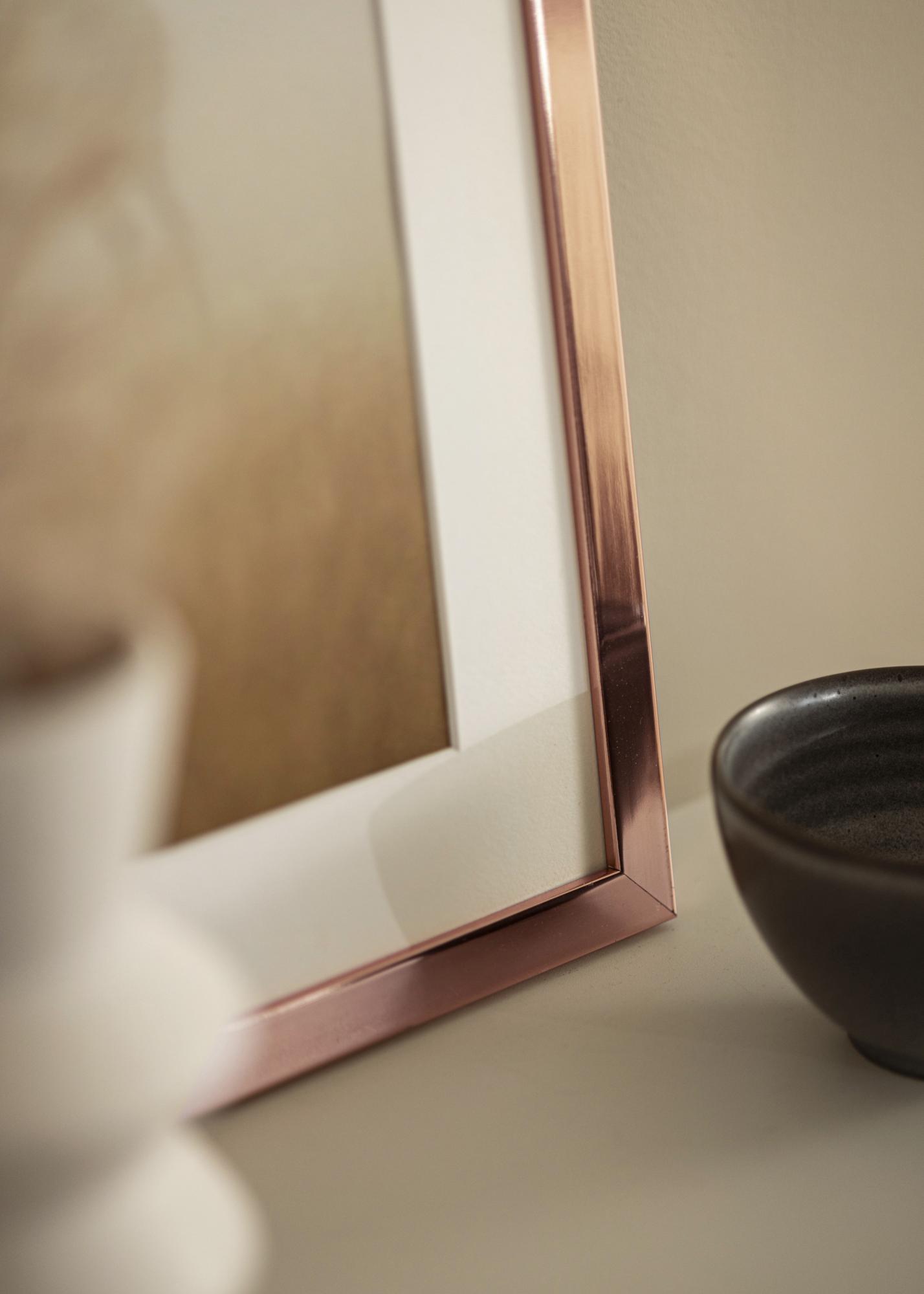 The rose gold finish provides a luxurious feel and the metallic surface has a soft sheen that creates subtle variations in color depth depending on the angle of the light. This makes the frame not only complement your photo, but also become part of the decor in your home.
