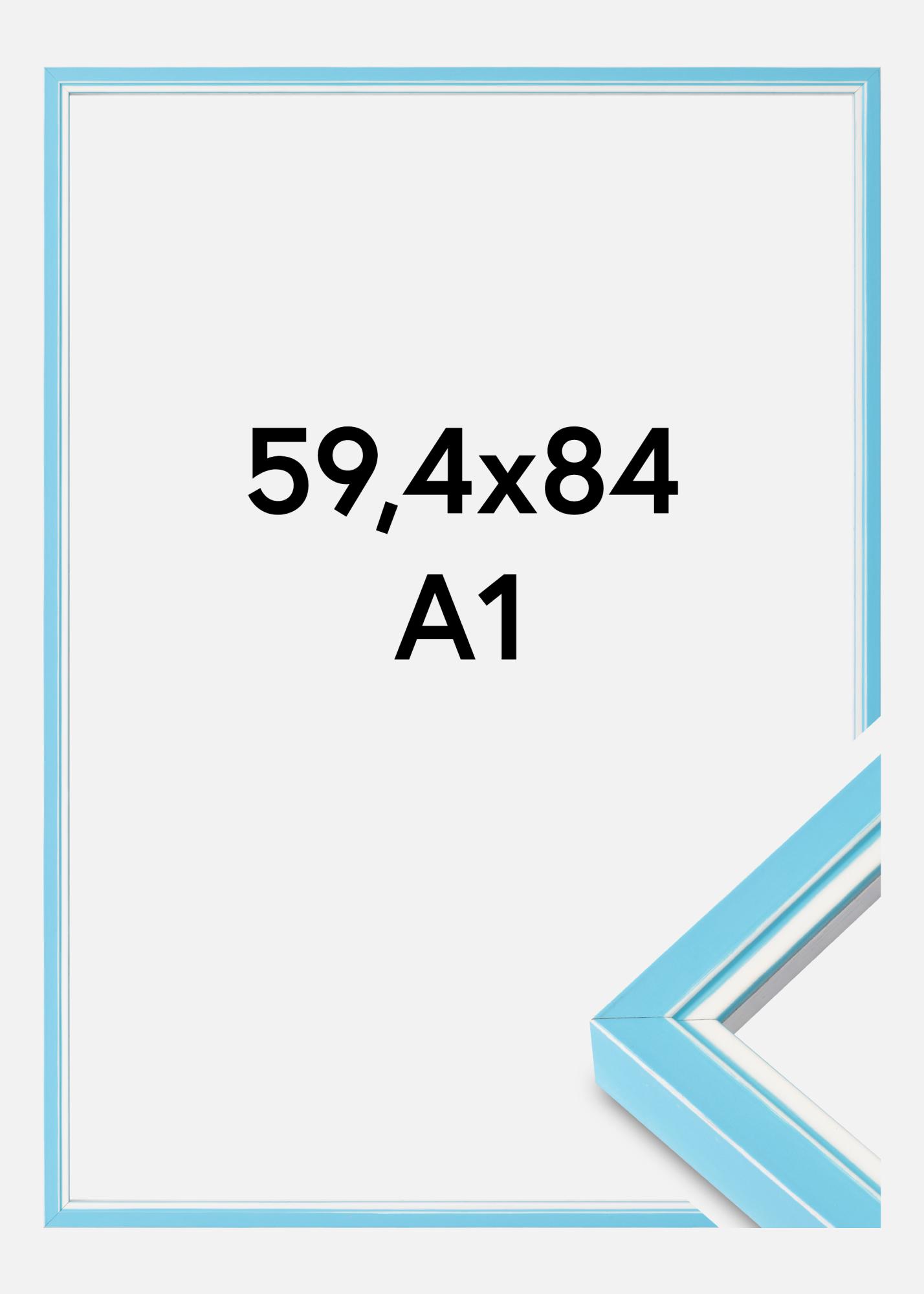 Give your favorite artwork or family photo the attention it deserves with our stylish photo frame in the size of 59.4 x 84 cm (A1). This picture frame is not only an elegant interior detail, but also a practical protection for your photos. The light blue and white color combination of the frame creates a fresh and vibrant feeling to any room.