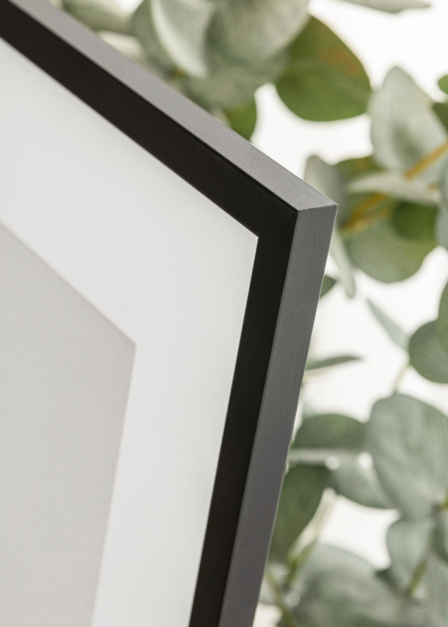 Edsbyn Black is a quality frame produced in Sweden from Ayous wood. The frame is painted black to give a modern and timeless appearance which is enhanced by the angular profile. The frame moulding is 13 mm wide and 11.5 mm deep which means that the frame is thin but still solid and stable. The frame comes with attachments for wall mounting both vertically and horizontally. The rebate depth (internal measurement) is 8 mm giving you plenty of space to complement your picture with an elegant passepartout or mount. The backing is made from MDF and is held in place with the help of small metal pins which are easily lifted when you want to mount your picture.