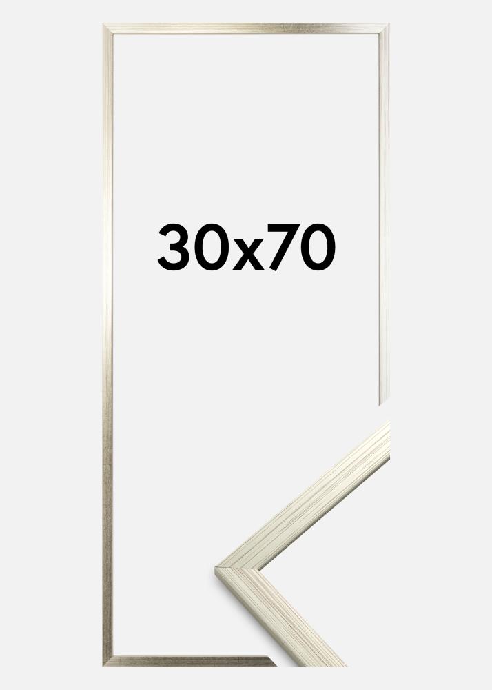 Give your walls a touch of elegance with this silver-colored photo frame measuring 30x70 cm. The classic design is complemented by a foiled surface with discreet red speckled details, creating a sophisticated impression in any room. With a frame width of 13 mm and a depth of 11.5 mm, this picture frame creates a distinct frame around your artwork or photo.