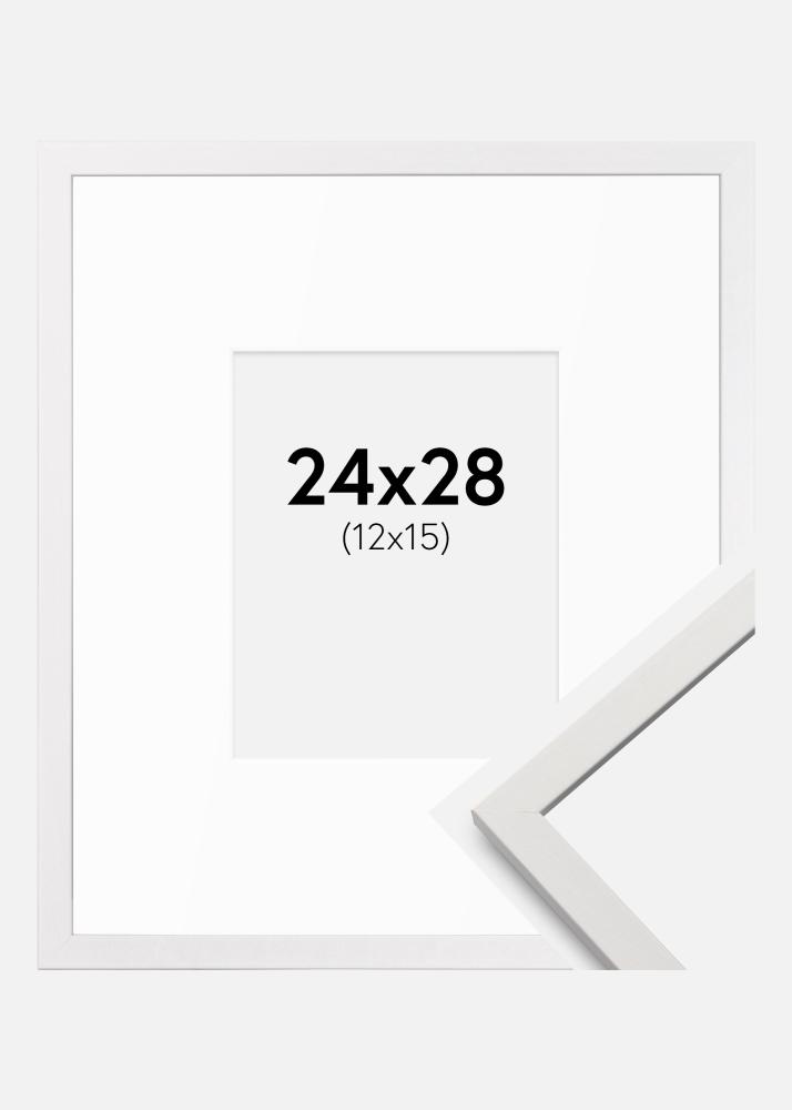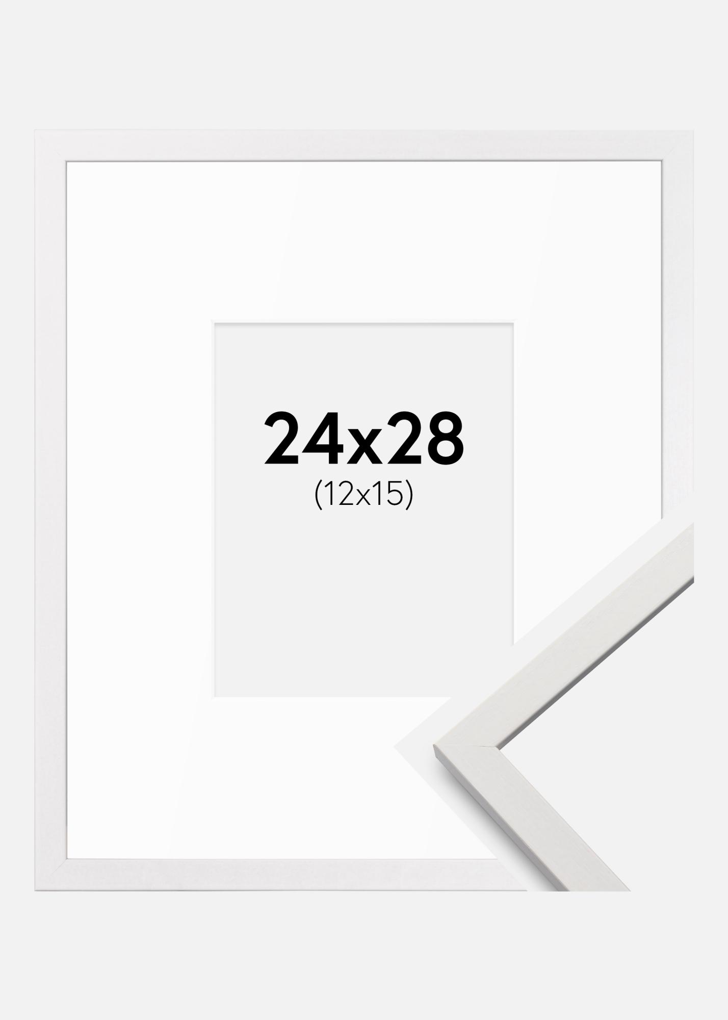 This elegant frame with a passepartout is the perfect choice for highlighting your favorite pictures. With a sleek white color and a matte finish, the frame provides a sophisticated impression that fits most interior styles. The frame's outer dimensions are 25.6x29.6 cm and it is designed to fit pictures sized 13x16 cm, making it ideal for showcasing special memories.