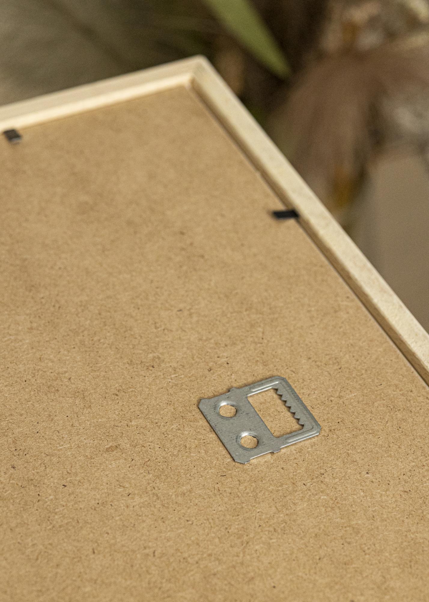 The frame has a matte finish and is equipped with metal hangers on the back for both horizontal and vertical hanging.