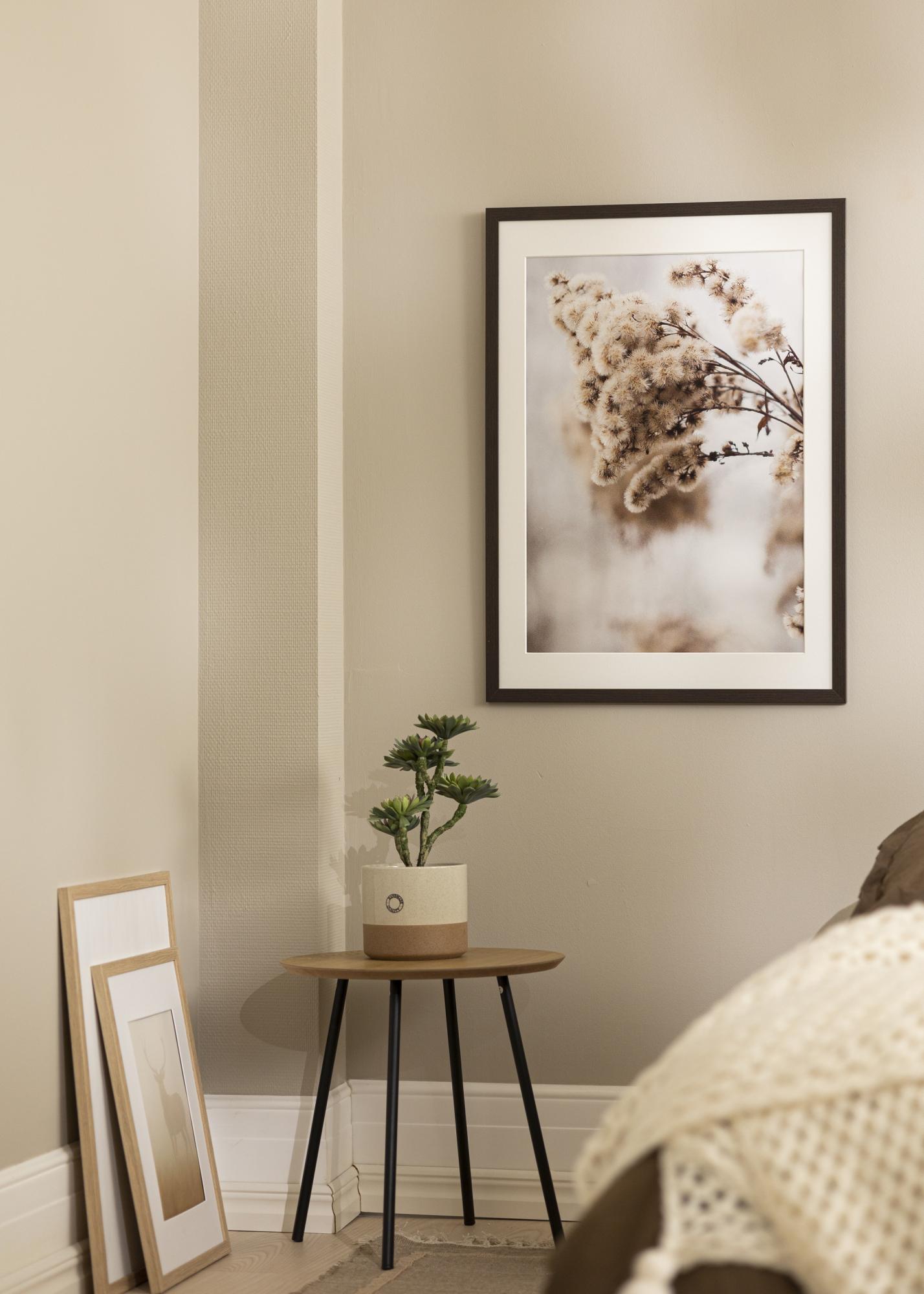 This elegant brown frame with passepartout is perfect for highlighting your favorite pictures in the size 40x60 cm. With a width of 20 mm and a depth of 14 mm, it gives a sleek and modern feel to your home.
