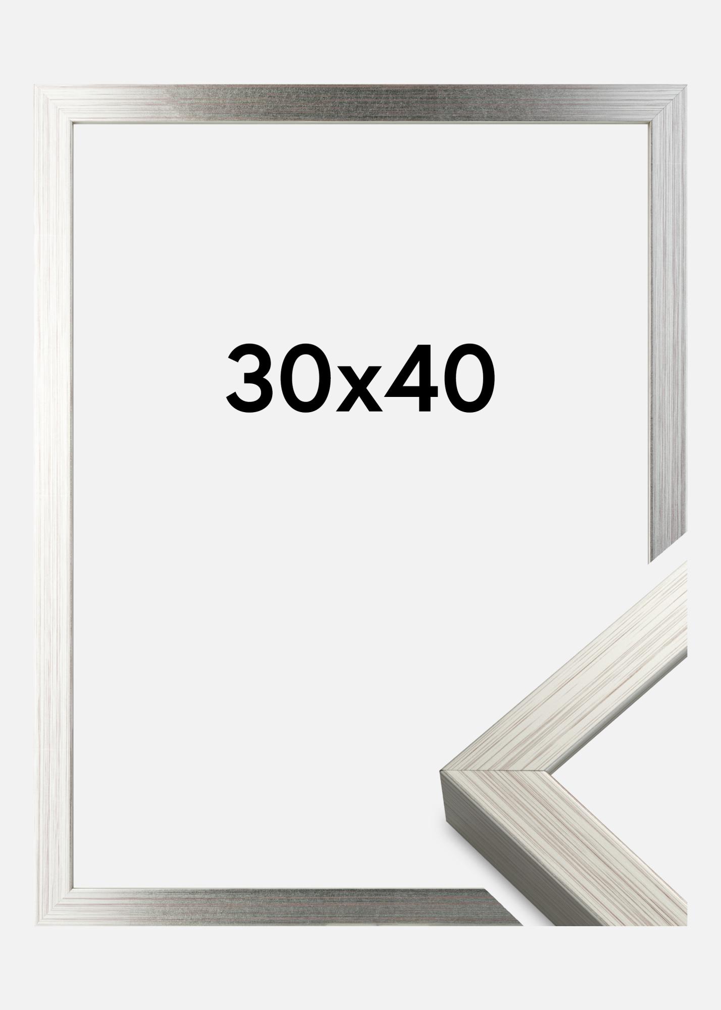 Falun is a substantial silver frame that definitely catches the eye. The frame has a depth of 33 mm which means it protrudes from the wall, creating a cool 3D effect for your pictures. The frame has faintly red-speckled elements which give a nice silver-coloured surface. The frame is made in Sweden by Galleri1, which guarantees high quality.