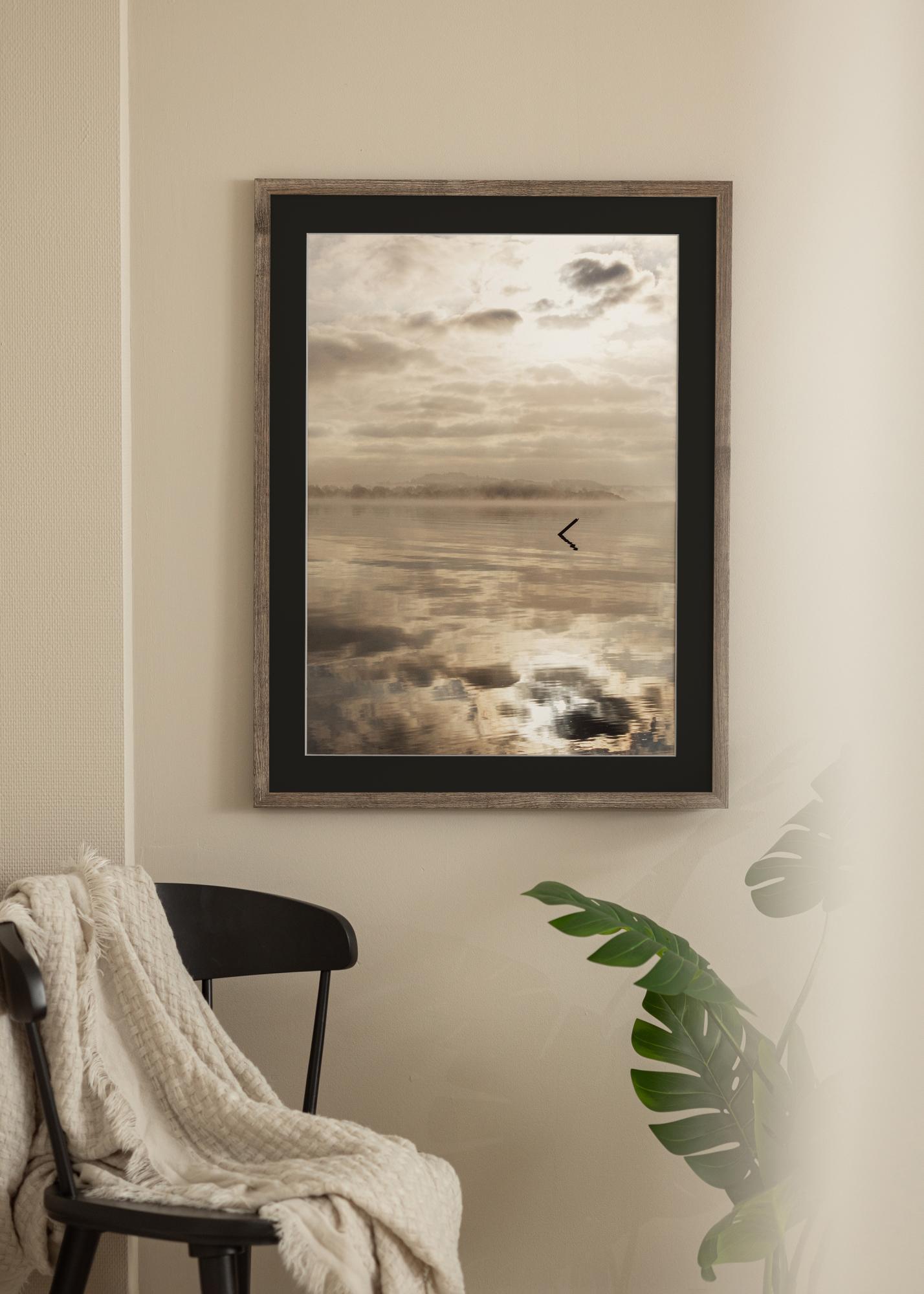 Package including picture frame and matching black mount. The product image shows the dimensions of the frame (indicated in bold) and the inner dimensions of the mount (indicated in brackets). Note that the inner dimensions of the mount should be 1 cm smaller than the image size.
