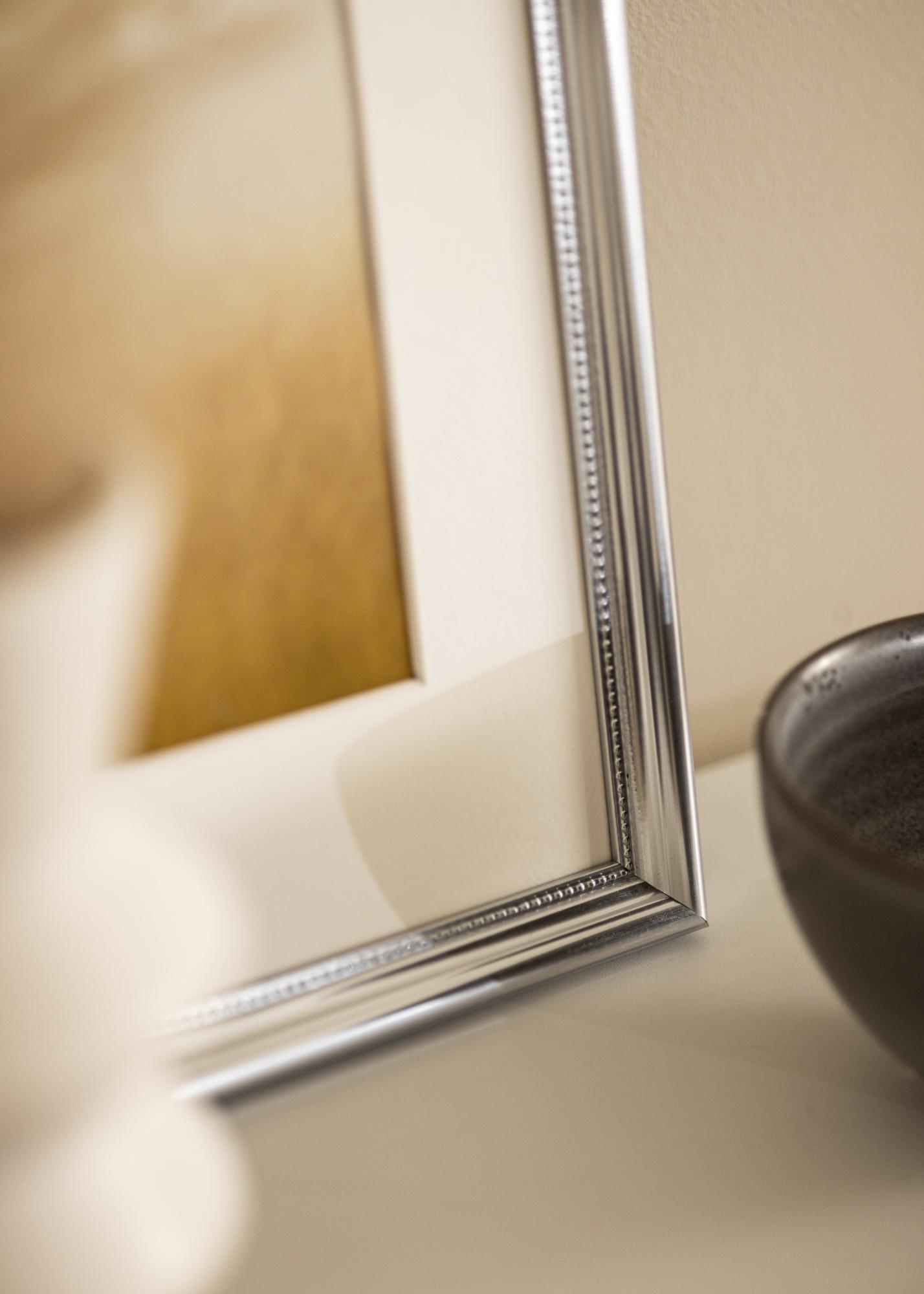 Add an elegant frame to your posters and art pieces with this silver photo frame in the size of 42x59.4 cm (A2). With its profiled frame trim of 20 mm and a depth of 17 mm, it brings a distinct and sophisticated feel to your chosen motif. The glossy surface of the frame beautifully reflects light and adds a luxurious touch to the room.