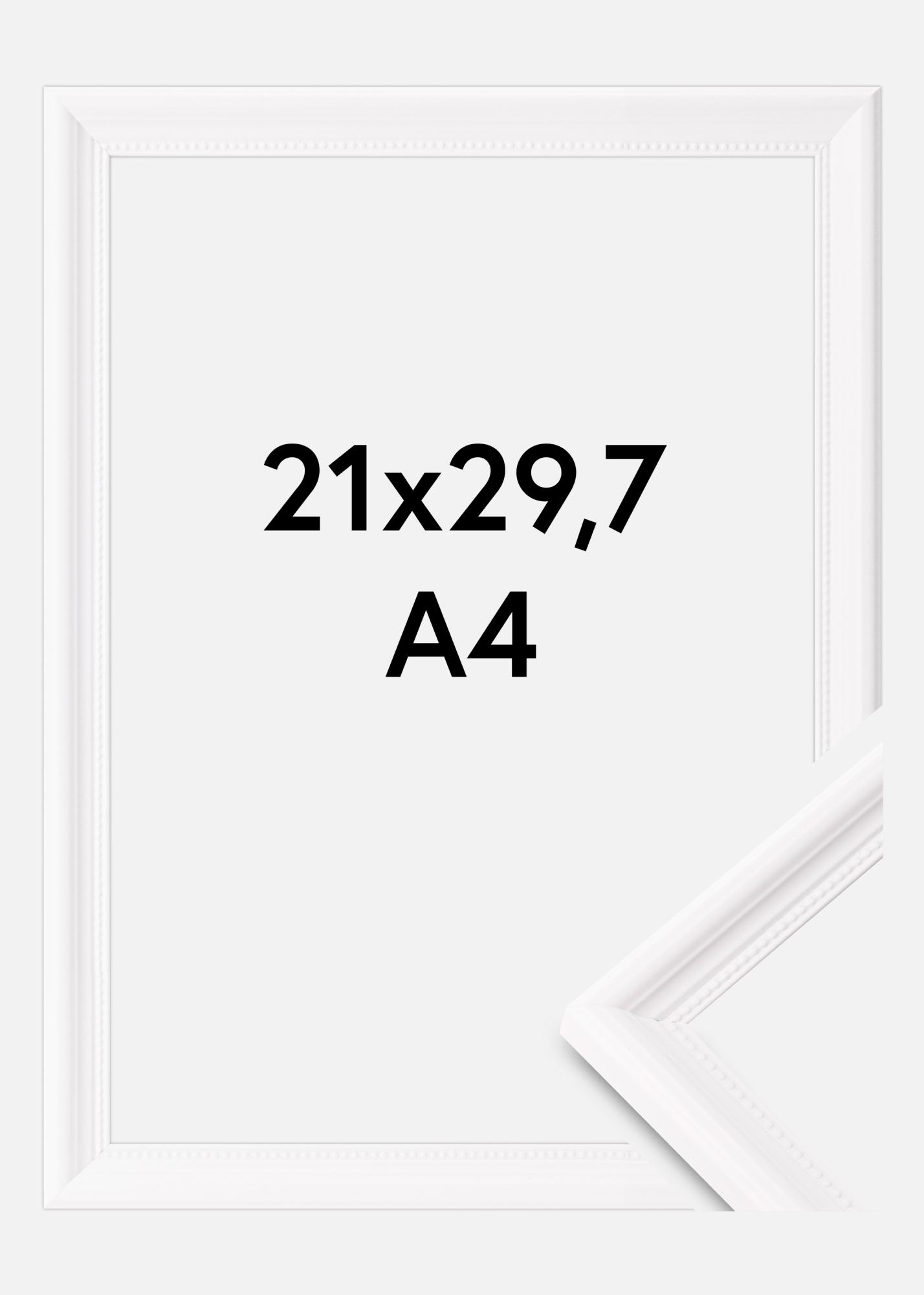 Create a timeless wall decoration with this elegant photo frame in the size of 21x29.7 cm (A4). The white color and retro-style profiled frame give a sophisticated impression that complements all types of artwork or photographs. With a frame width of 20 mm and a depth of 17 mm, this picture frame provides a distinct and attractive border to your favorite subject.