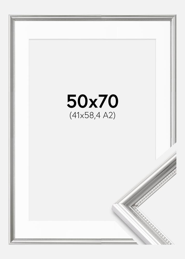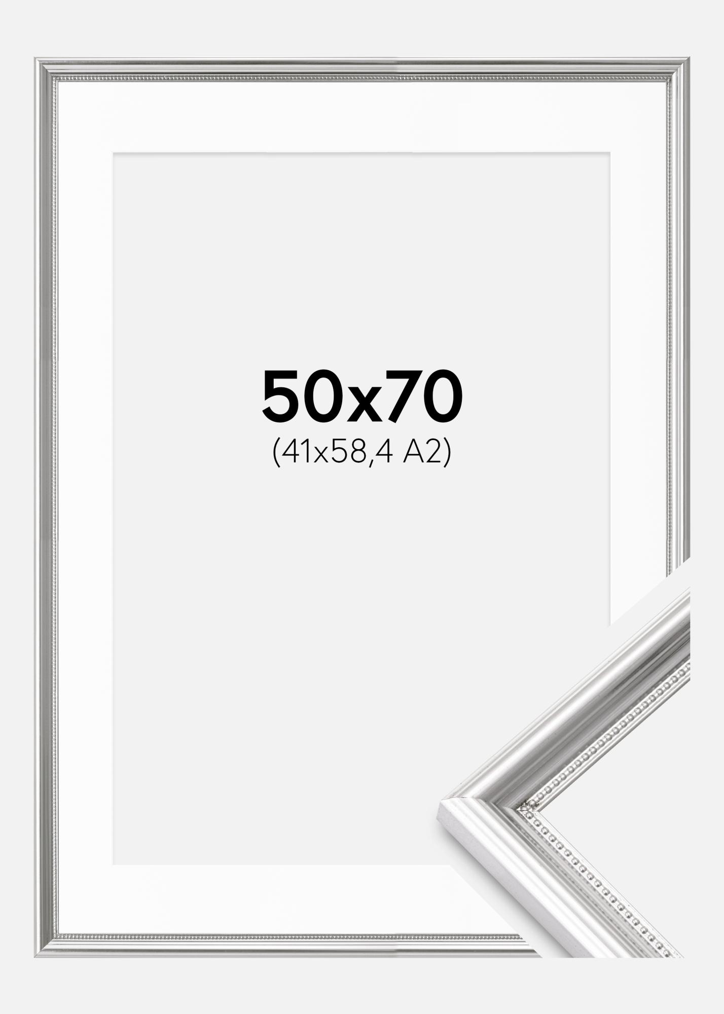 Frame Gala Silver 50x70 cm - Picture Mount White 42x59.4 cm (A2)