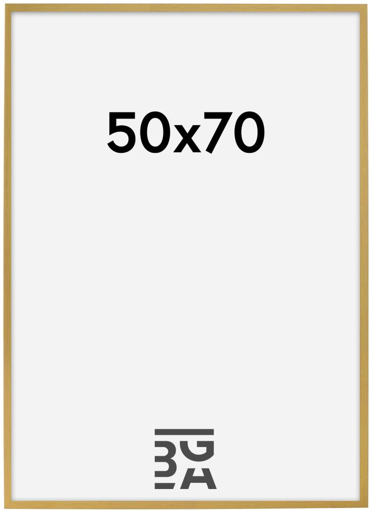 Frame Gold Plexiglas is a frame with thin edges and a stylistically simple design that allows the picture to be in focus. This modern, golden picture frame has been fitted with acrylic glass, so it works well in rooms and spaces where you are looking for durable alternatives and/or are concerned about the strength of the walls. Reducing the weight of large pictures is something many strive for, which is why this frame in the size 50x70 cm now comes with acrylic glass.