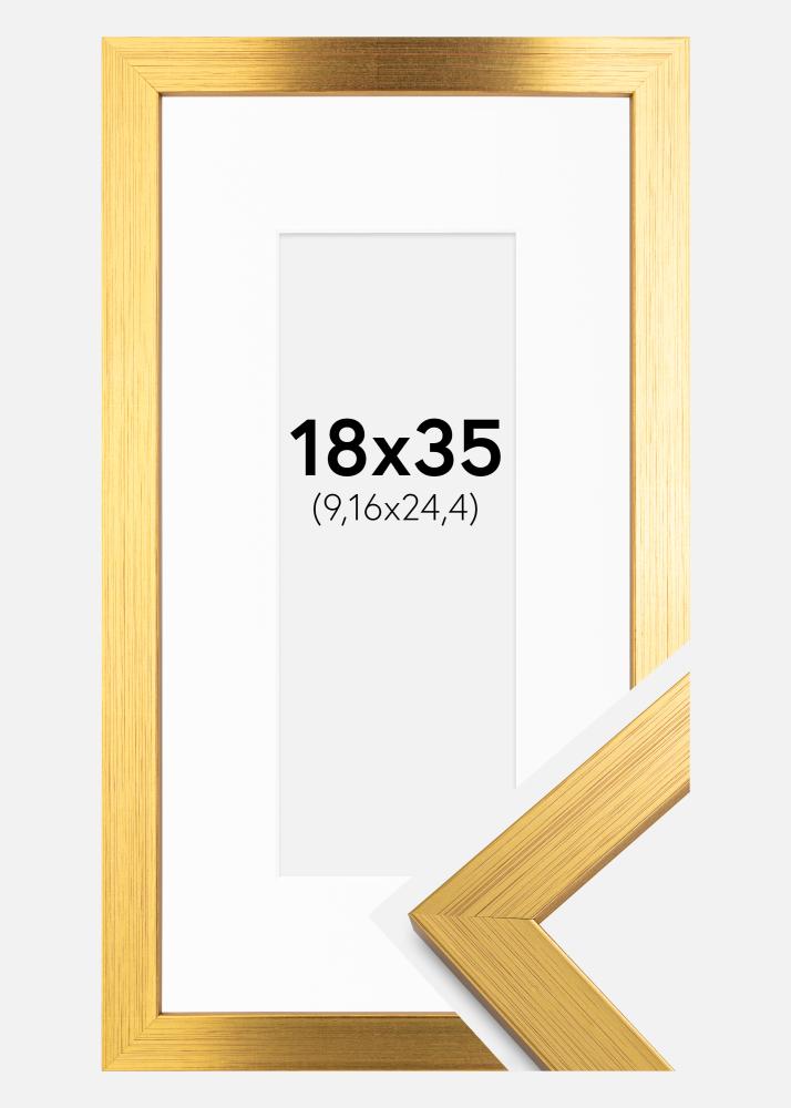 Frame Gold Wood 18x35 cm - Picture Mount White 4x10 inches