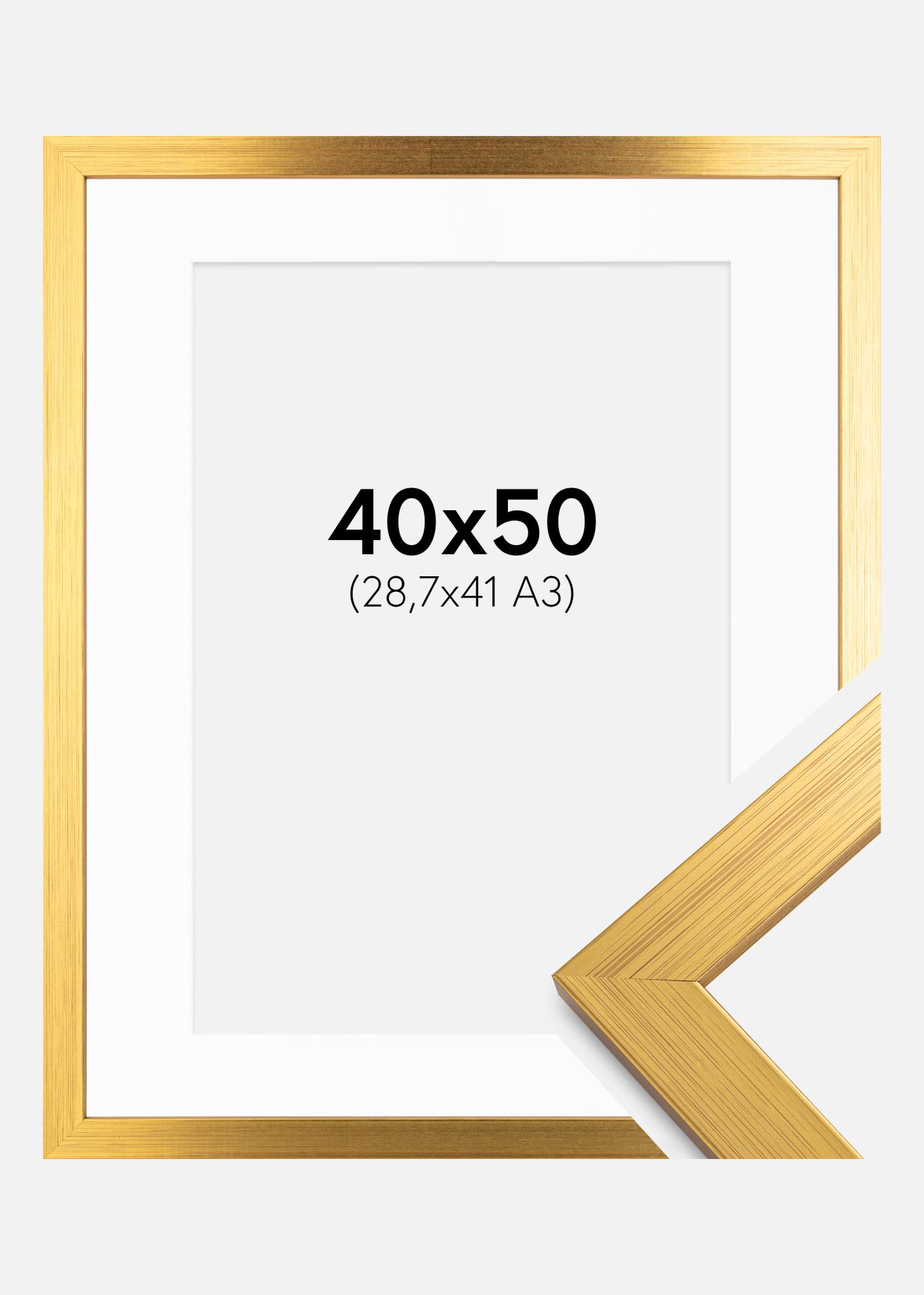 Frame Gold Wood 40x50 cm - Picture Mount White 29.7x42 cm (A3)