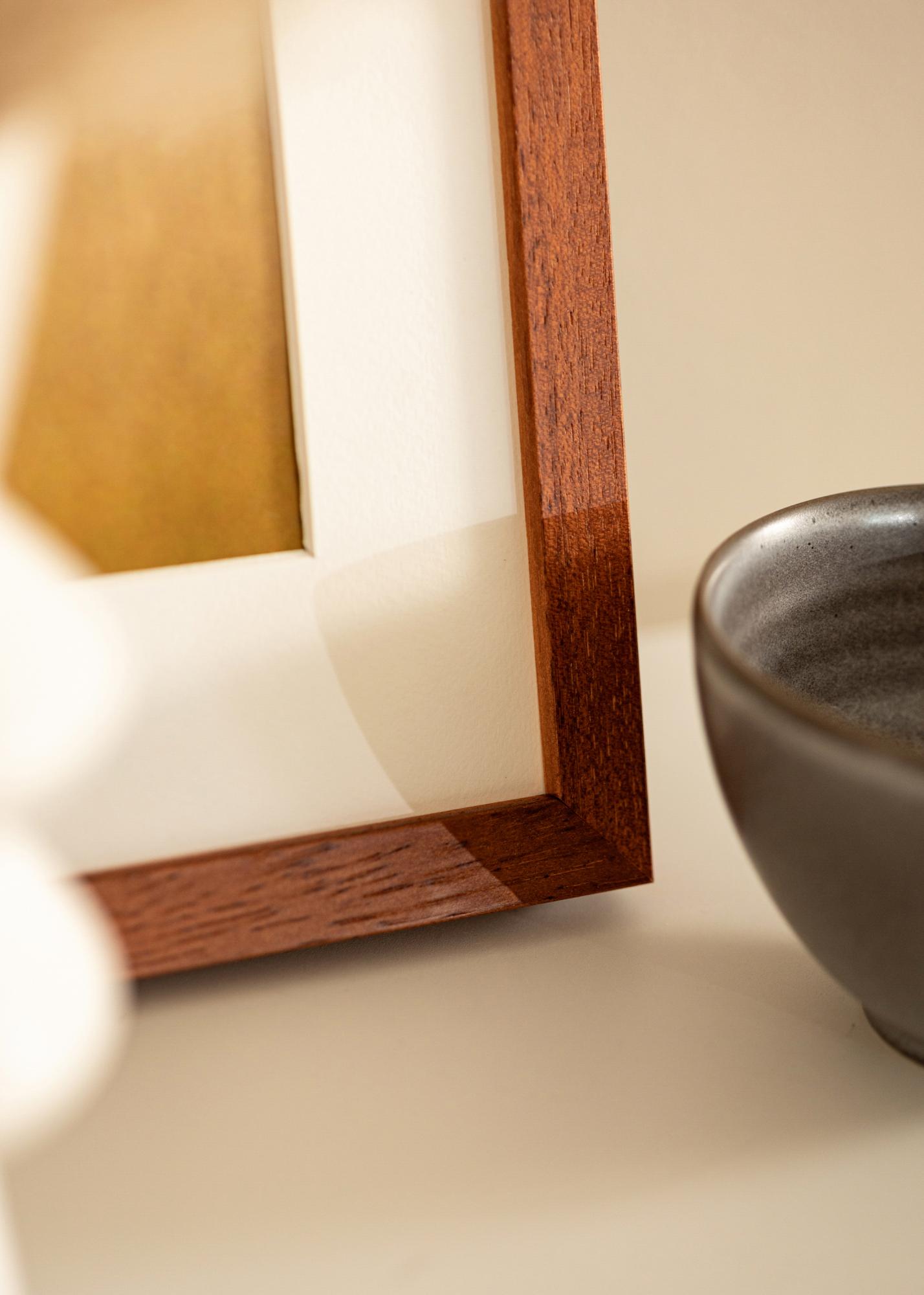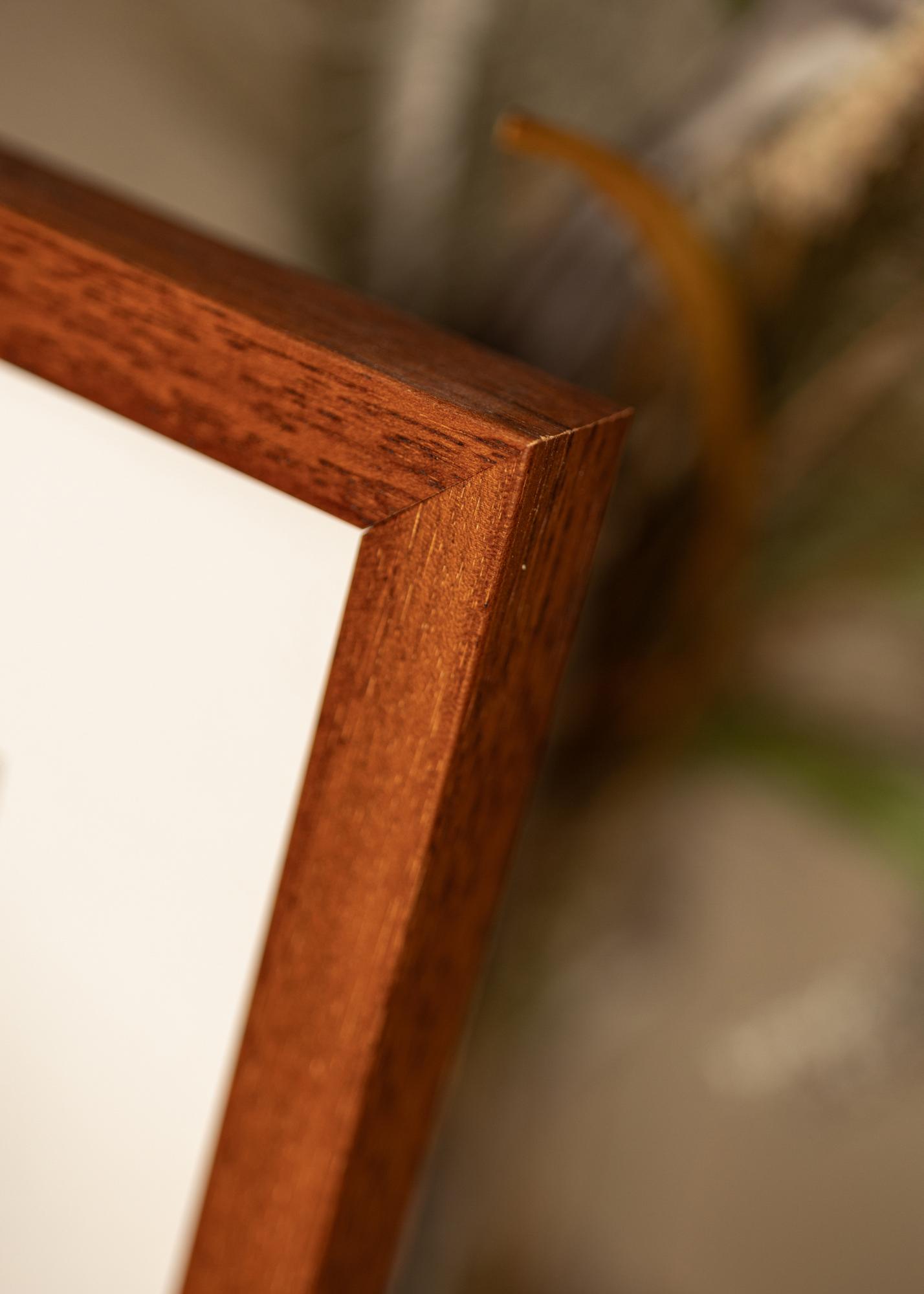 This elegant frame in cherry color has a width of 19.6 mm and a depth of 25 mm. It is equipped with metal hangers for both horizontal and vertical hanging. Fits pictures in the size of 25x38 cm and has outer dimensions of 45x62.4 cm.