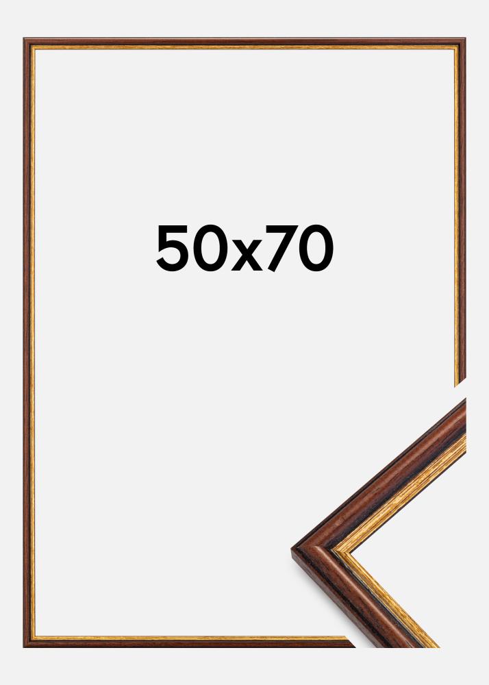Horndal is a Swedish-made quality picture frame from Galleri 1. The picture frame is made of wood and has a brown profile with black speckles. Next to the image is a gold-coloured edge with traces of brown. The frame has an older-style profile, which suits most subjects.