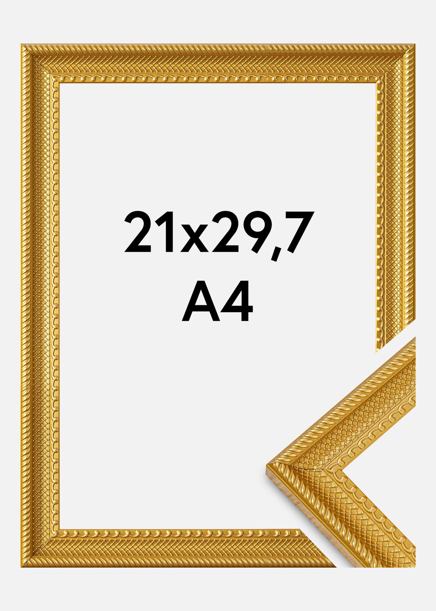 This elegant gold photo frame is a perfect combination of classic design and modern functionality. With its detailed patterns along the edges and a glossy finish, it provides a luxurious feel that enhances any artwork or photograph. The frame is made of composite material, which gives it both strength and lightness. It is designed to fit images sized 21x29.7 cm (A4), making it ideal for displaying your favorite memories in a stylish way.