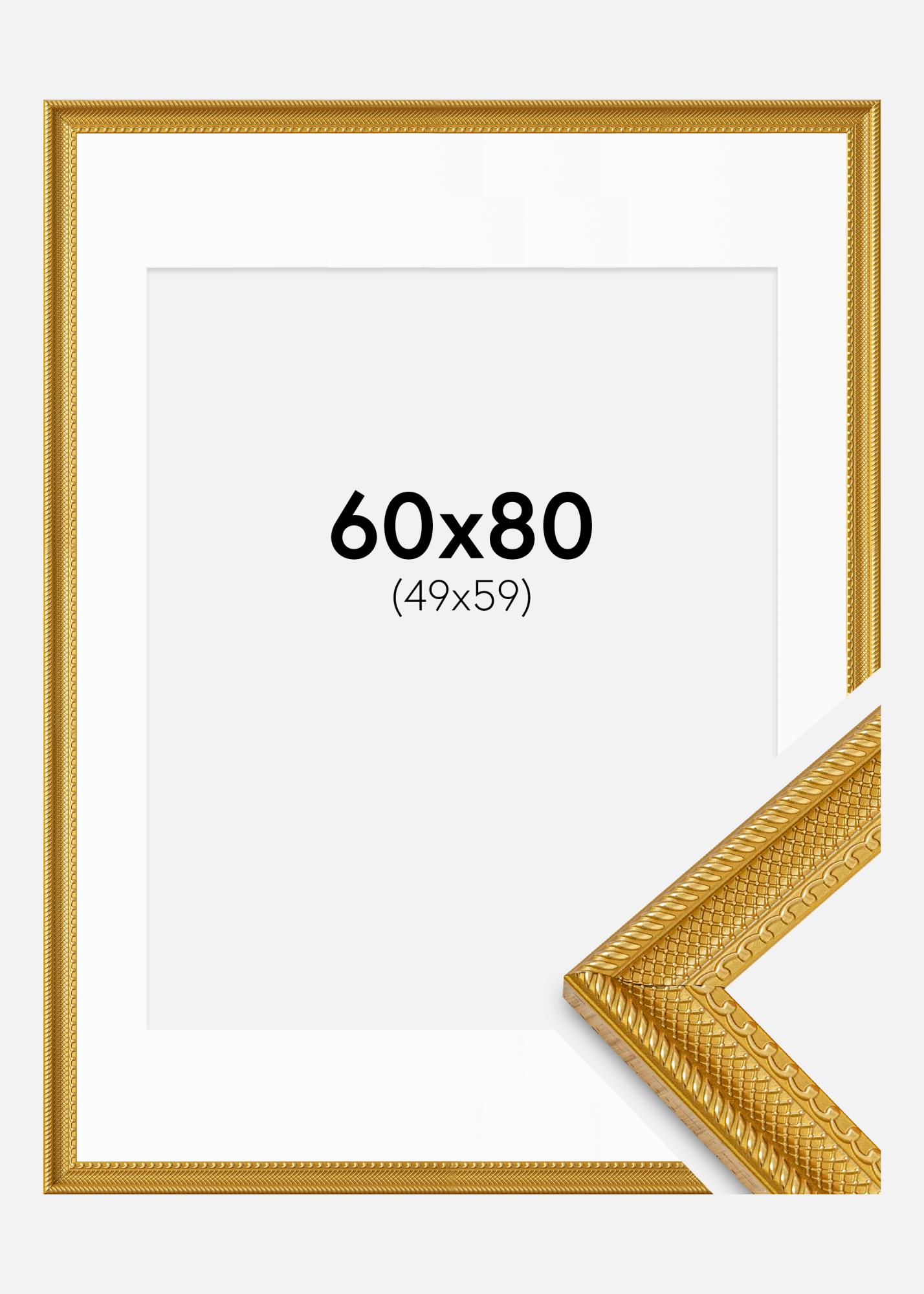 Transform your pictures into works of art with our elegant gold frame, complete with a sleek white mat. This frame is designed to fit pictures sized 50x60 cm and provides your photographs with a sophisticated framing that truly highlights the subject.