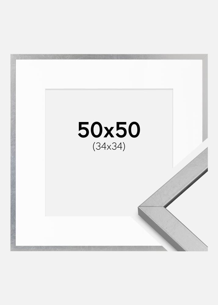 Frame Minerva Silver 50x50 cm - Mounts White 35x35 cm