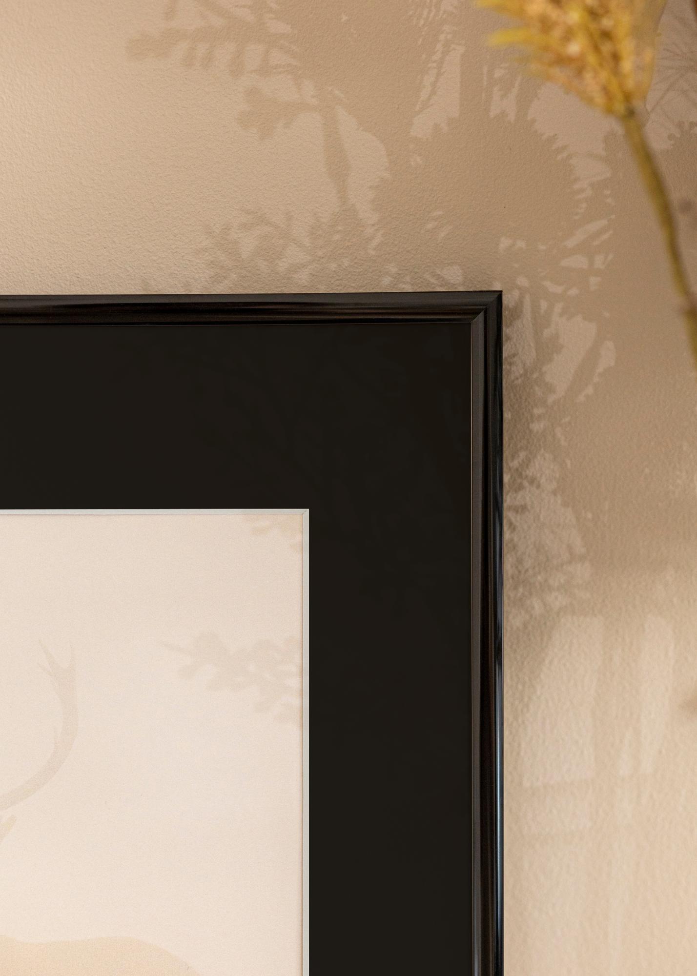 Package including picture frame and matching black mount. The product image shows the dimensions of the frame (indicated in bold) and the inner dimensions of the mount (indicated in brackets). Note that the inner dimensions of the mount should be 1 cm smaller than the image size.
